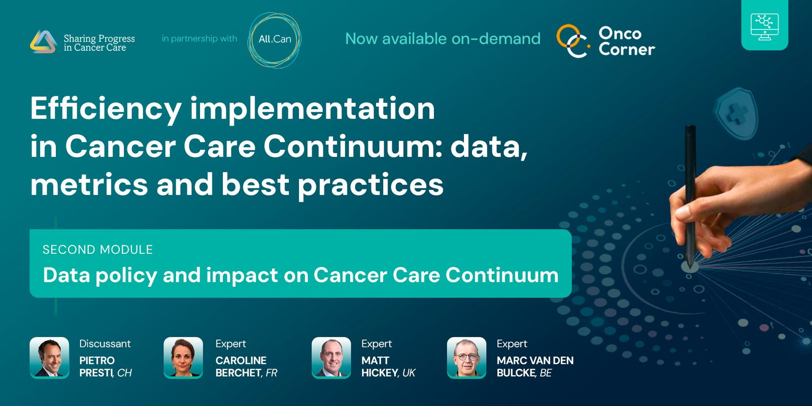 Matt Hickey focused on cancer care optimization and performance measurement, presenting various models and providing implementation guides to improve healthcare delivery and outcomes for cancer patients. Marc Van den Bulcke discussed the significant impact of the EU Health Data Space on cancer care, particularly in terms of data management, and how the shared data infrastructure could enhance efficiency in treatment and care processes.