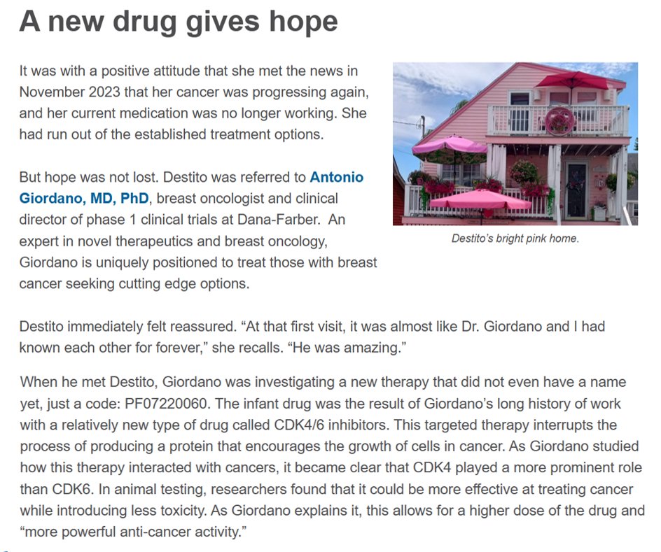 “Dr. Antonio Giordano’s novel work on a next-generation CDK4/6 inhibitor is offering new hope to patients like Ellie Destito, who had exhausted standard treatments.