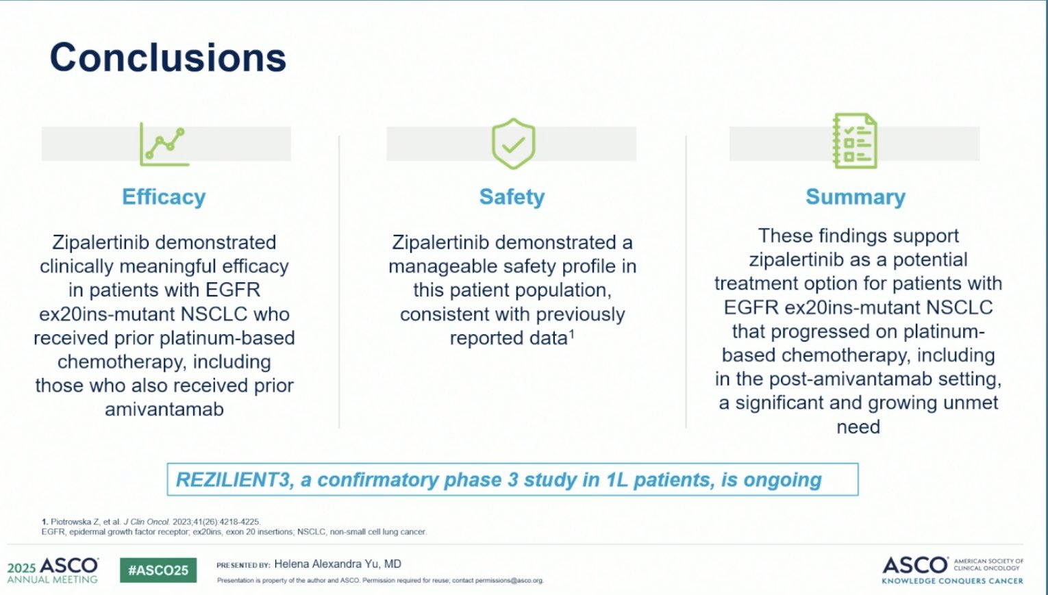 “At ASCO25, Dr. Helena Yu presented promising data for zipalertinib in previously treated EGFR ex20ins NSCLC
