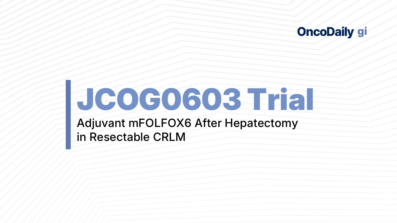 The Japanese Clinical Oncology Group (JCOG) designed the JCOG0603 to evaluate whether adjuvant modified FOLFOX6 (mFOLFOX6) after curative hepatectomy could improve long-term outcomes compared with surgery alone in patients with resectable CRLM.