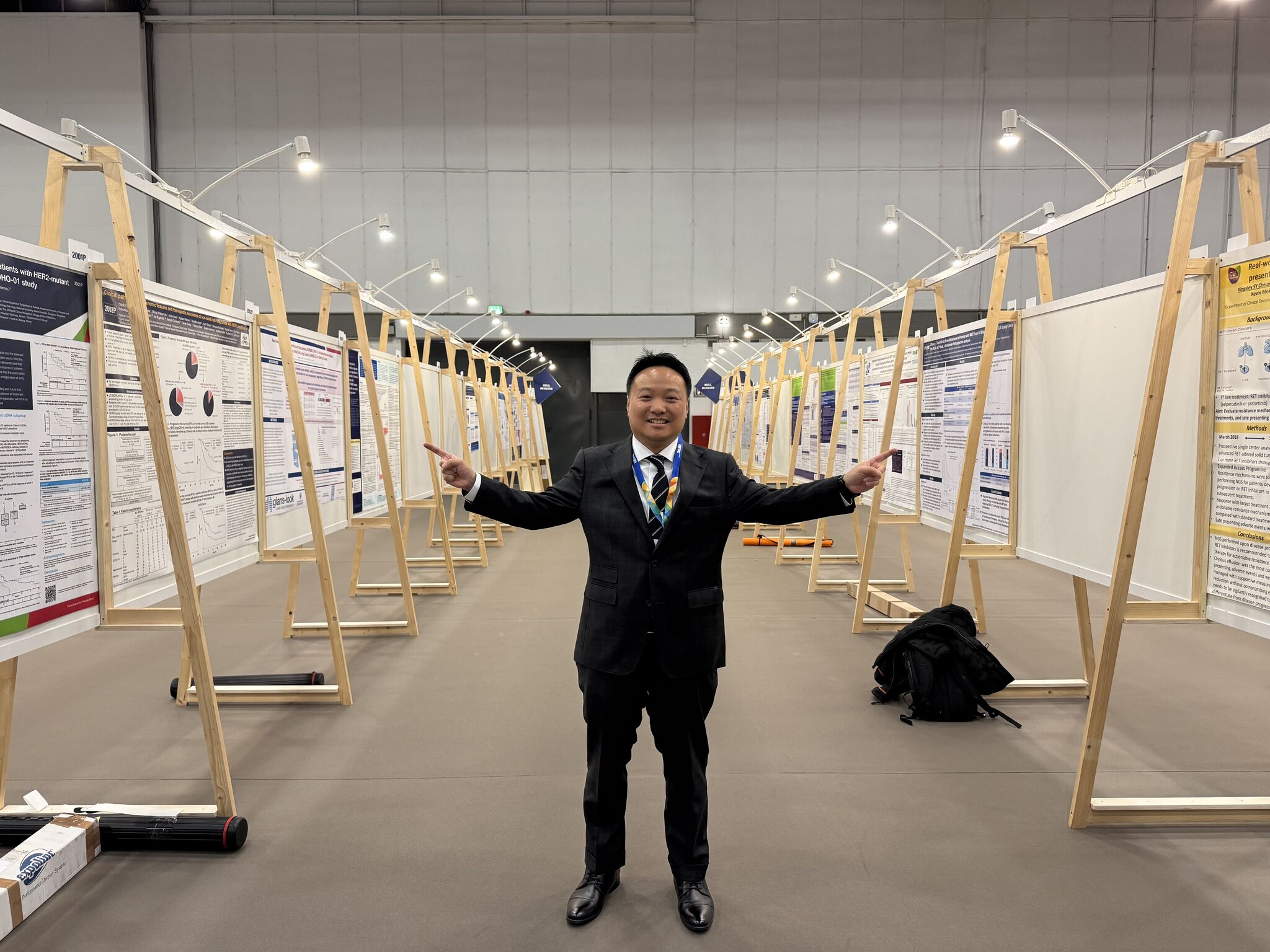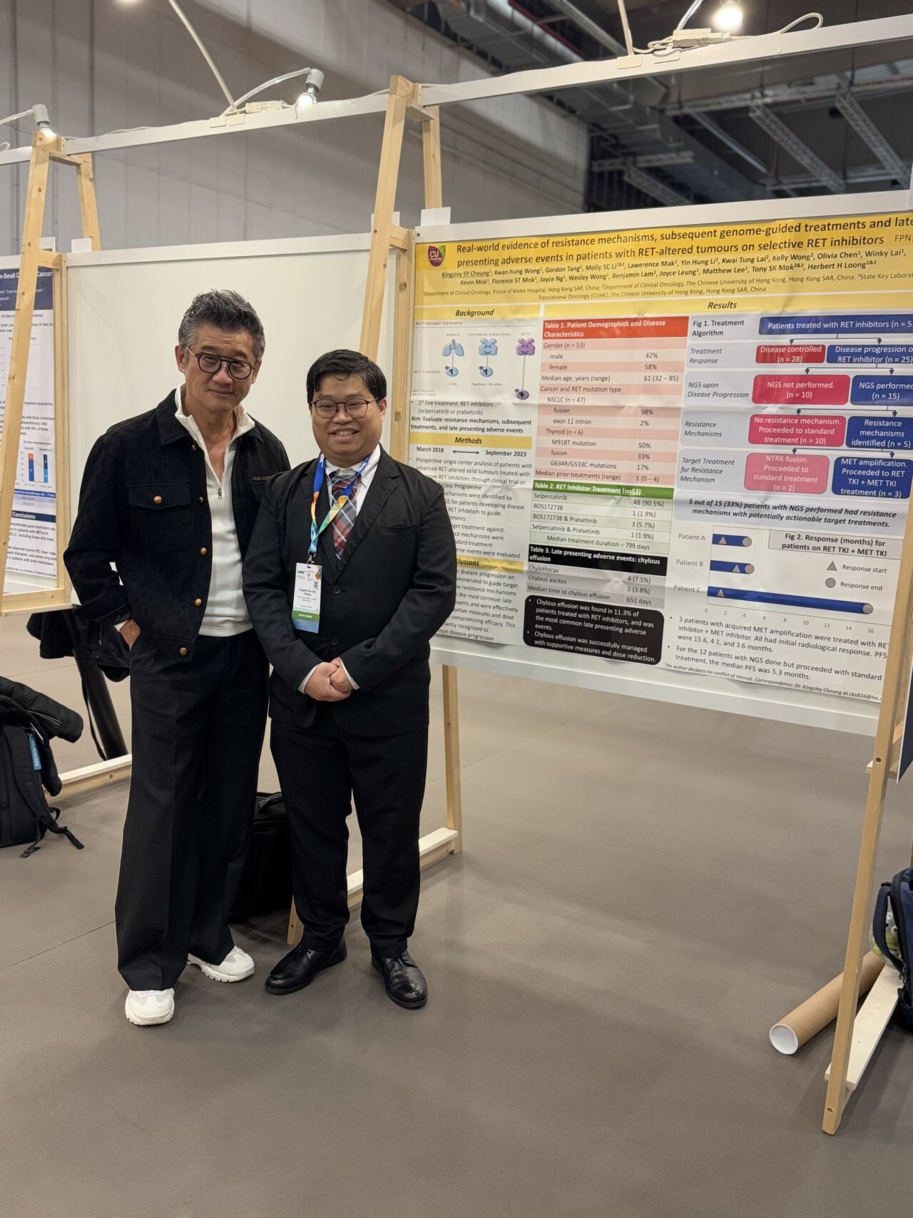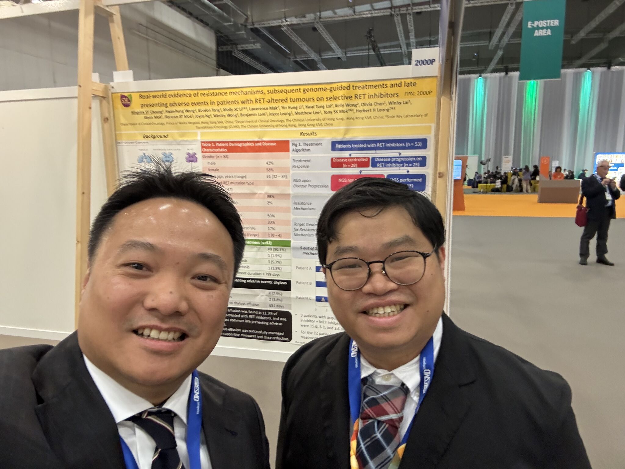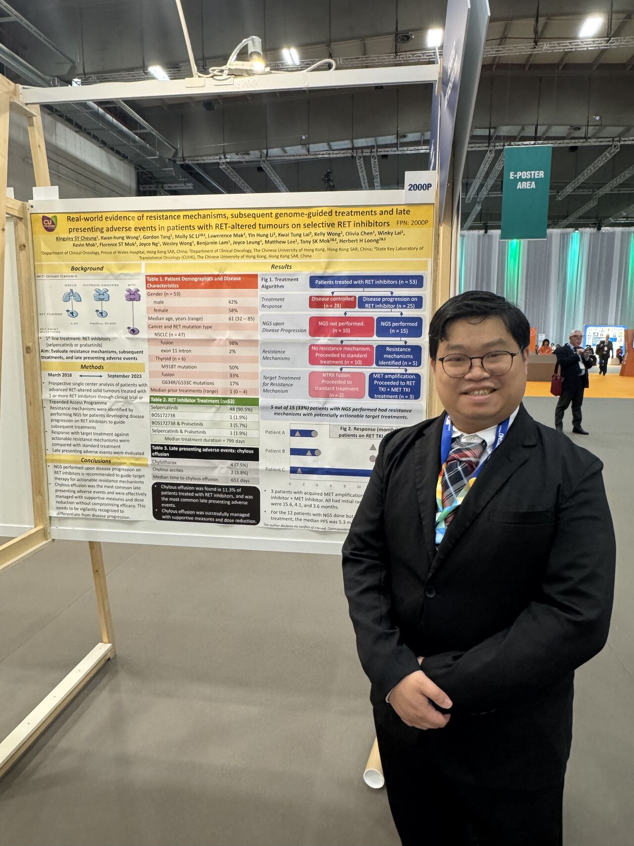 “Congrats to our CUHK Medicine Medical Oncology Fellow Dr. Kingsley Cheung who presented his poster on Real World Longer Term toxicities of selective RET inhibitors and potential targetable mechanisms of resistance at ESMO25 in Berlin!
