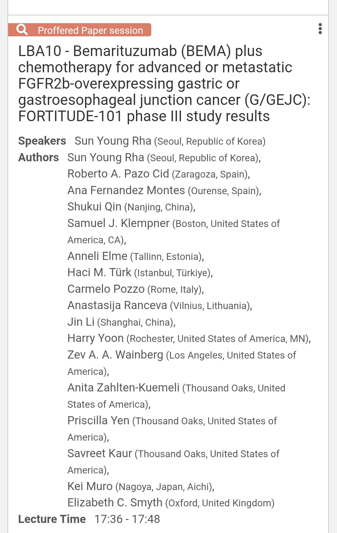 Bemarituzumab (BEMA) + mFOLFOX6 vs PBO + mFOLFOX6 in FGFR2b-overexpressing gastric/GEJ cancer