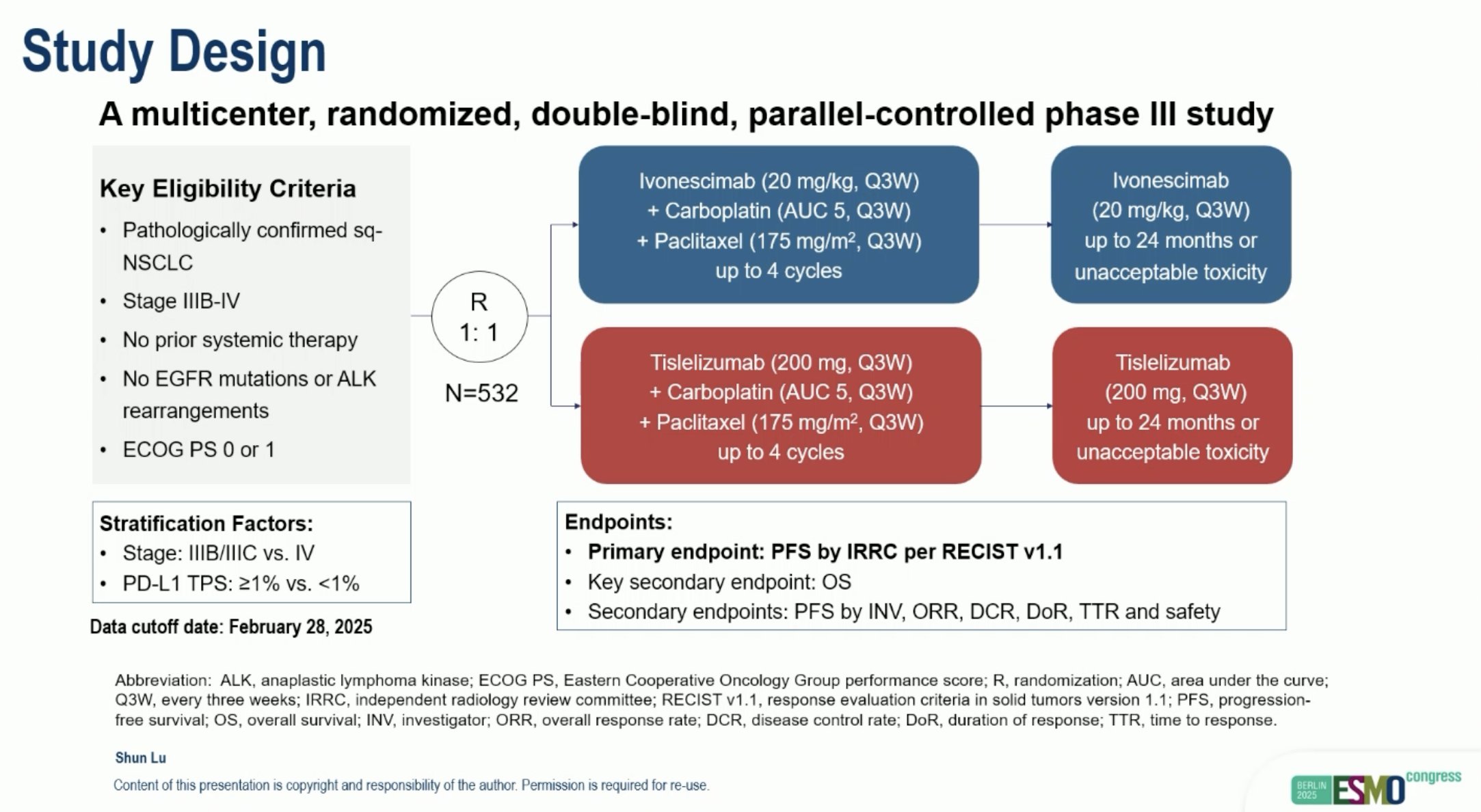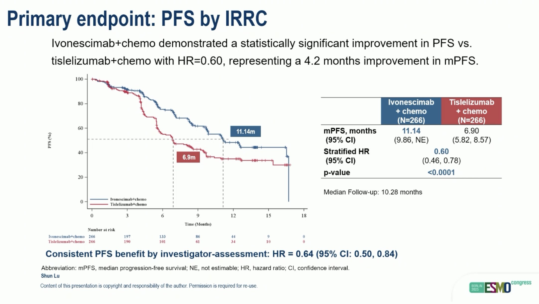 “Dr. Shun Lu delivers HARMONi-6 results at ESMO25: first line ivonescimab + chemotherapy vs tislelizumab (PD-1, approved by China, EMA) + chemo for advanced squamous NSCLC.