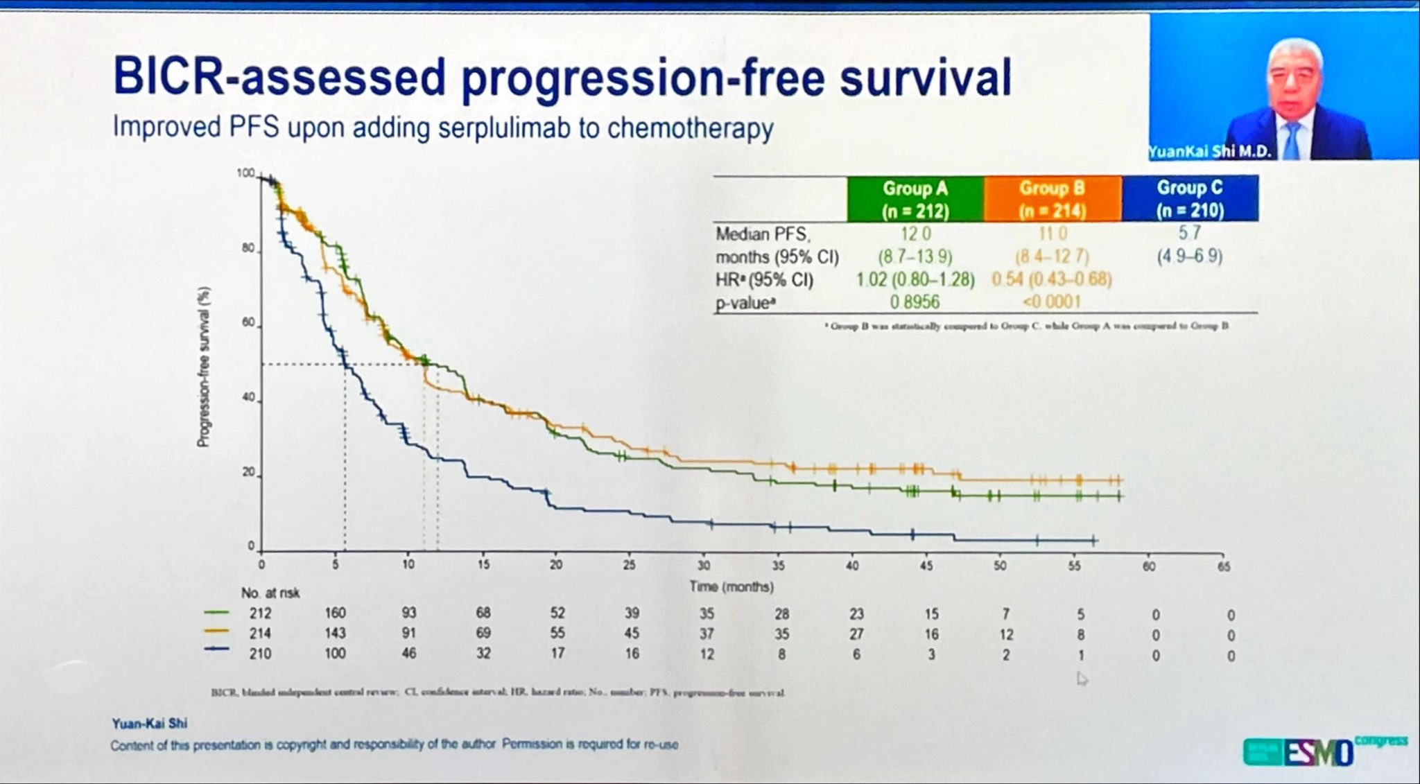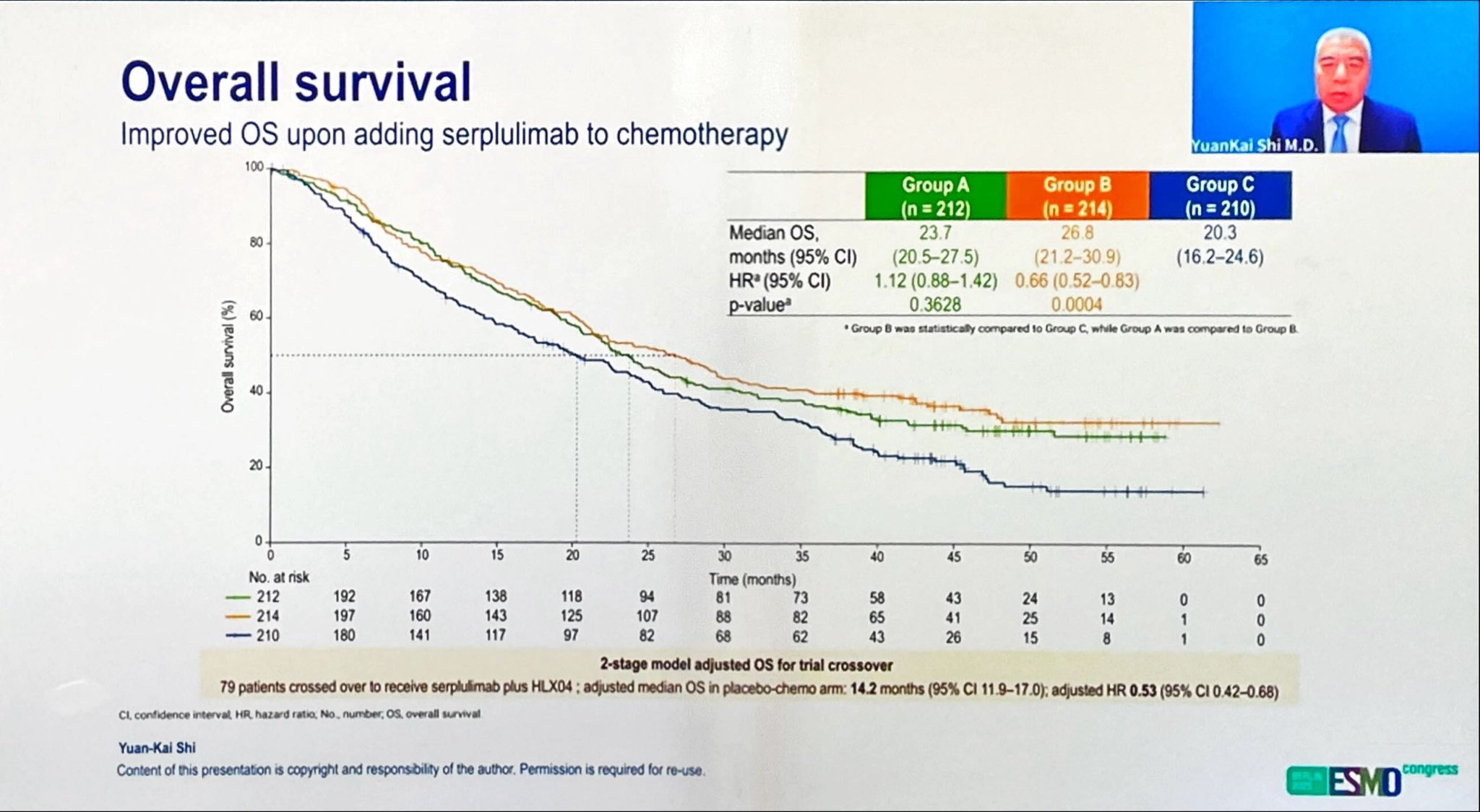 While serplulimab improved both PFS and OS, bevacizumab biosimilar did not have additive efficacy with serplulimab. Control arm based on chemo only is no longer the standard of care.”