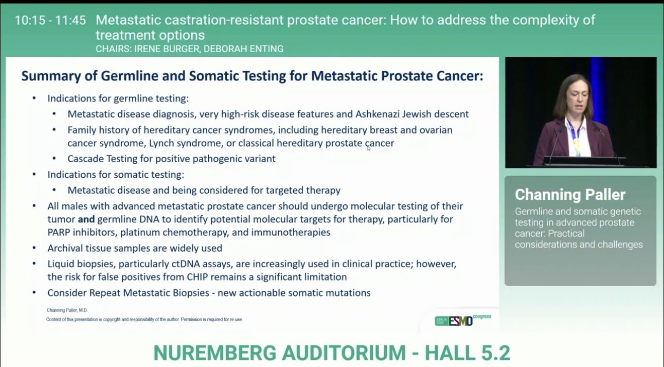 “Excellent talk on somatic and germline testing of advanced prostate cancer by Channing Paller.