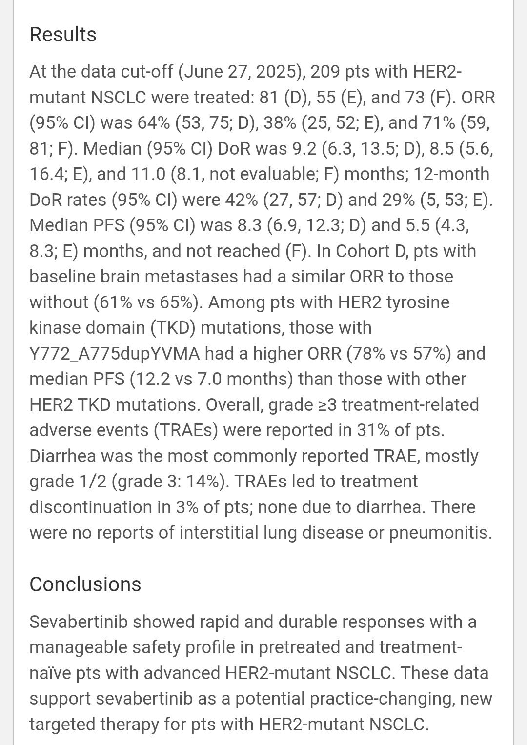 Well-tolerated, no ILD, grade ≥3 AEs 31% Practice-changing oral HER2 TKI—may redefine care in HER2-mutant NSCLC.”