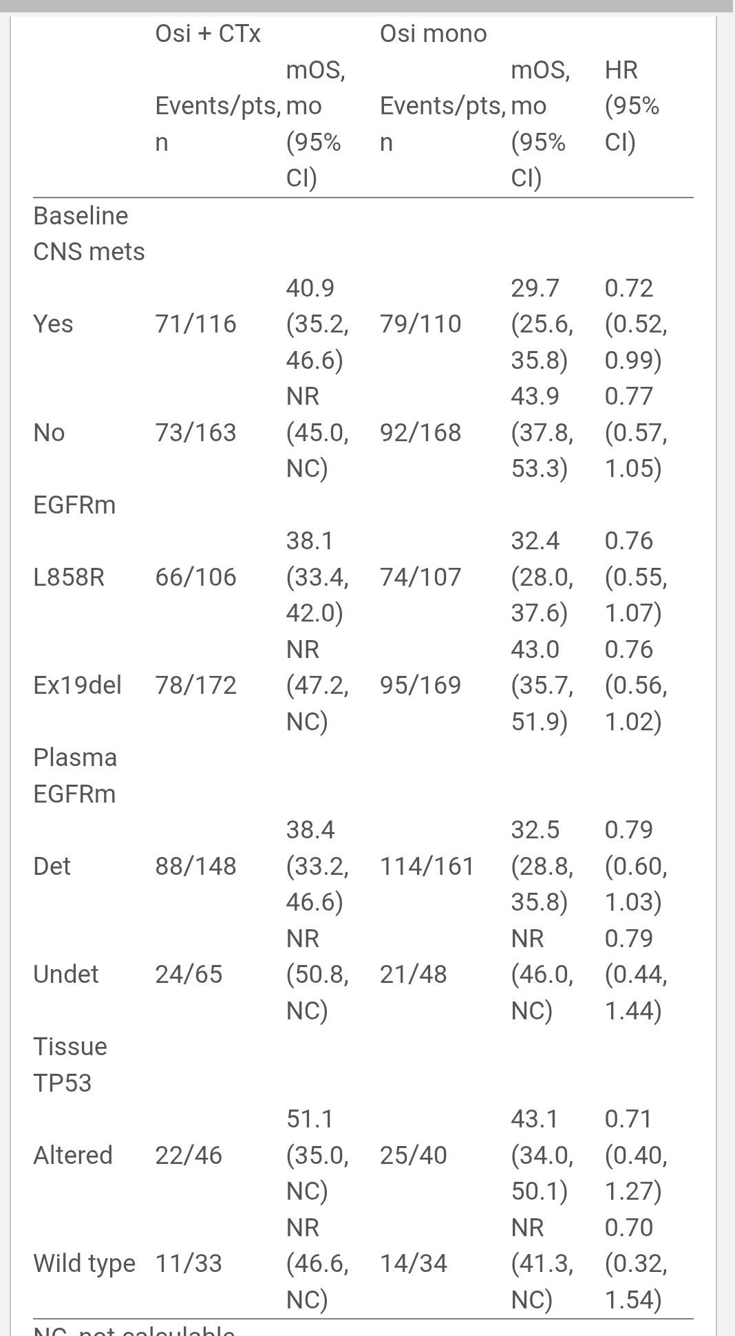 CNS mets → mOS 40.9 vs 29.7 mo (HR 0.72)