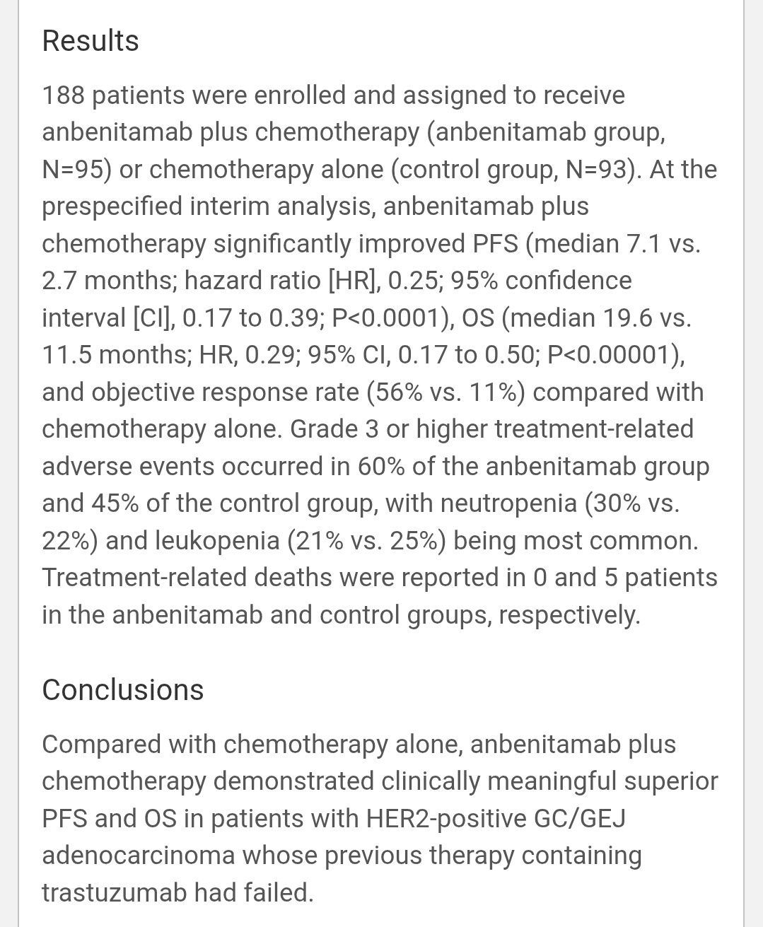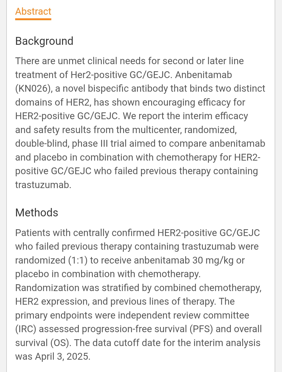 (Anbenitamab) + Chemo in HER2⁺ Gastric/GEJ Cancer After trastuzumab failure, adding Anbenitamab (KN026) — a bispecific HER2 antibody targeting two non-overlapping HER2 epitopes (trastuzumab- & pertuzumab-like) — delivered impressive gains.