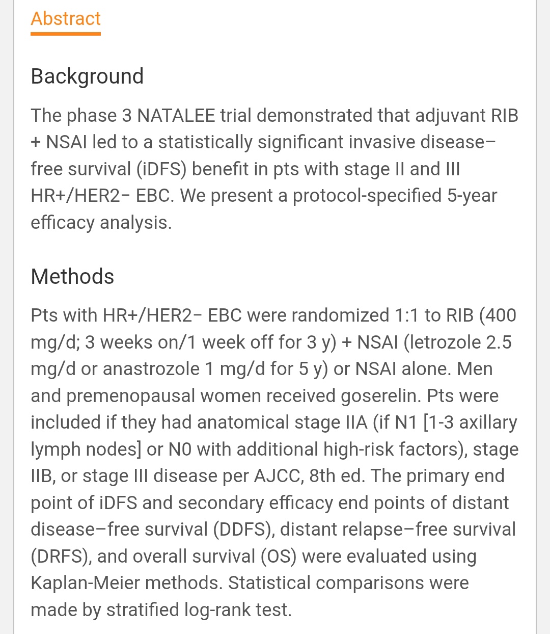 - OS benefit: ↓ risk of death by 15.8% (HR 0.84, p = 0.027)