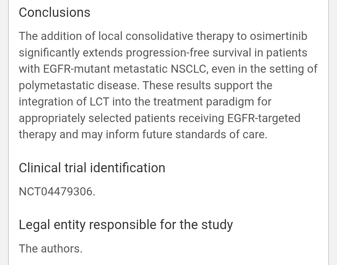 Phase II trial tested osimertinib ± local consolidative therapy (LCT) in EGFR-mutant metastatic NSCLC.