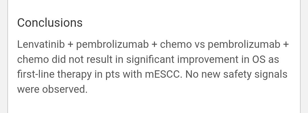 Lenvatinib + Pembrolizumab + Chemo vs Pembrolizumab + Chemo in 1L mESCC