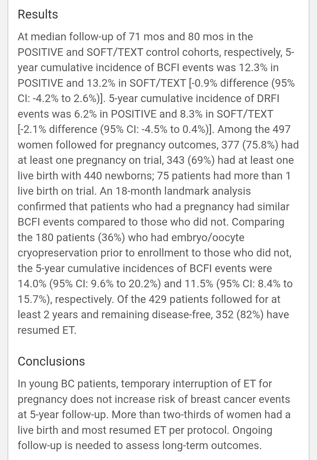 • 82% resumed ET after ≥2 yrs disease-free