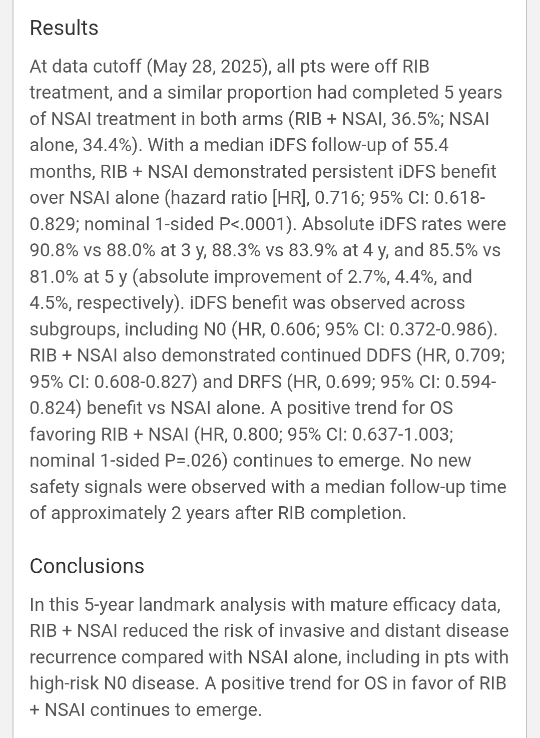 • 5-yr DRFI: 6.2% vs 8.3%