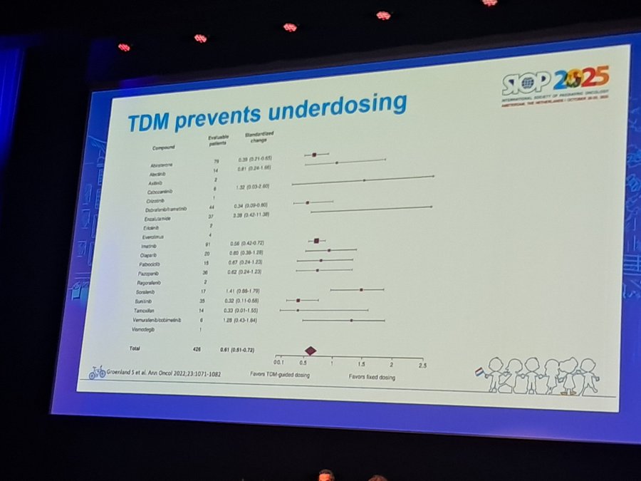“Even targeted treatment that has a fixed dose benefits from therapeutic drug monitoring and dosing. Look at the Alectinib drug monitoring and outcome. TDM prevents underdosing for most TKI but can be problematic for drugs like Cabozantinib.”