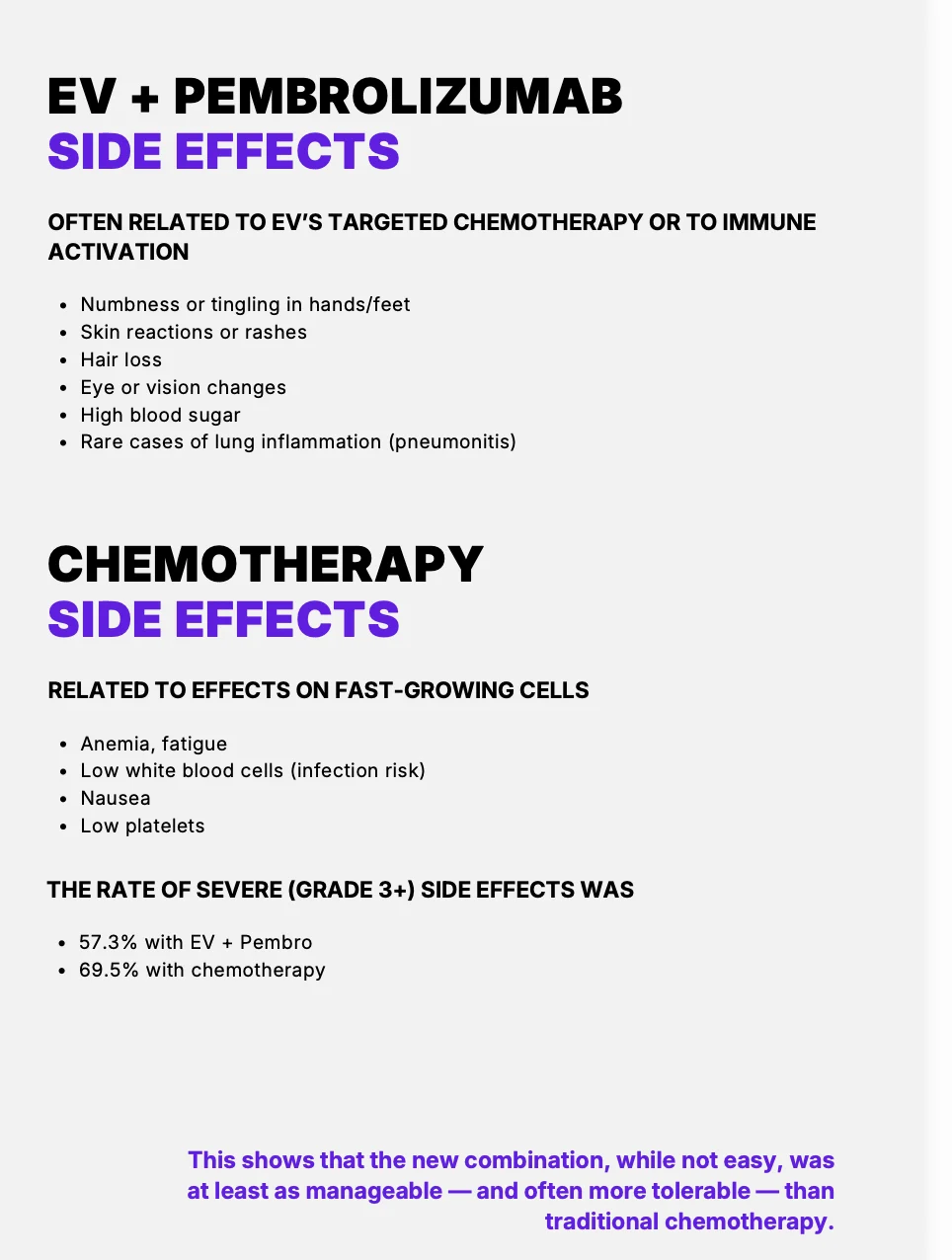 With enfortumab vedotin + pembrolizumab, the most common side effects included: