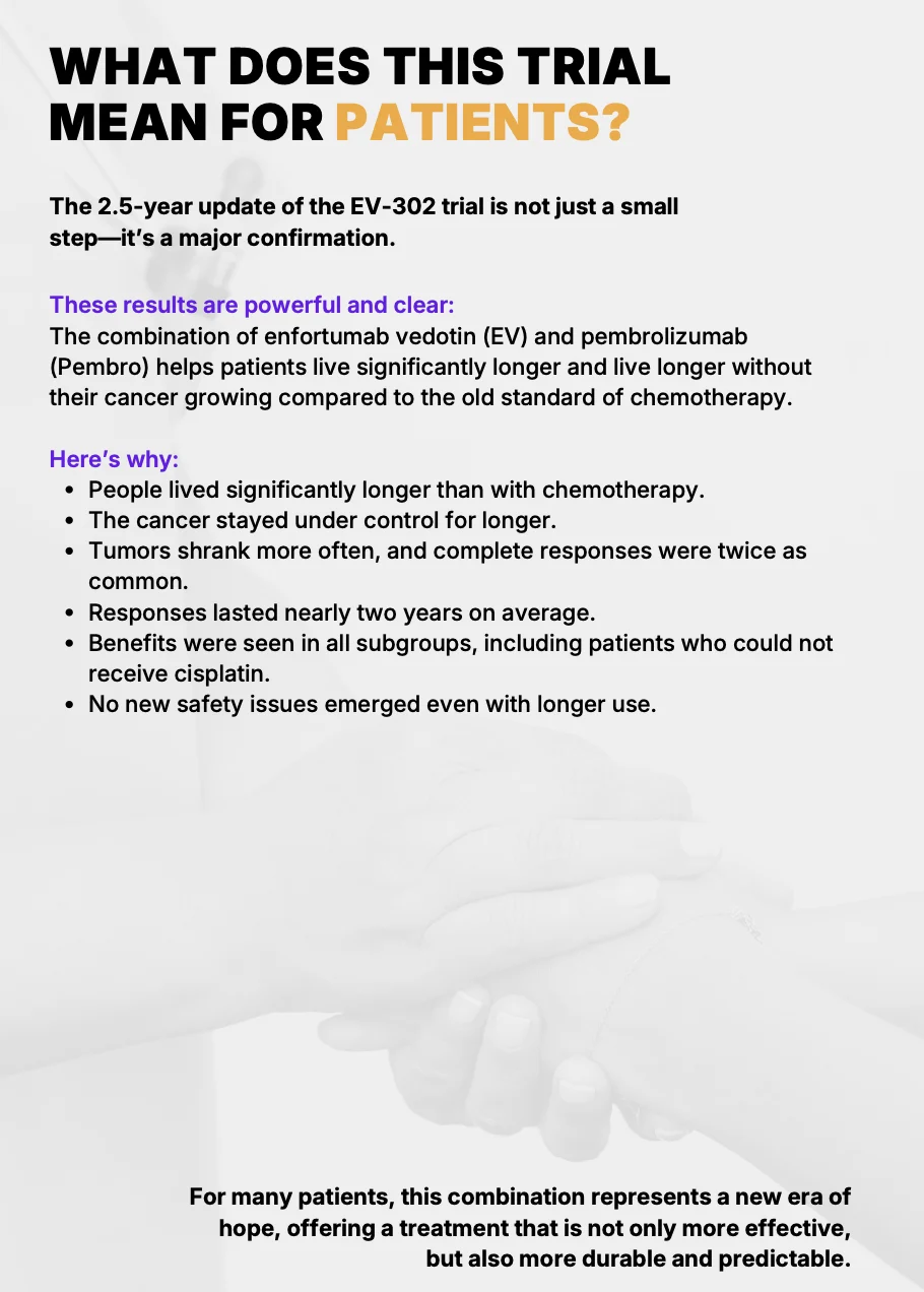 When the EV-302 trial was first reported, it already suggested that this combination could change the way advanced bladder cancer is treated.