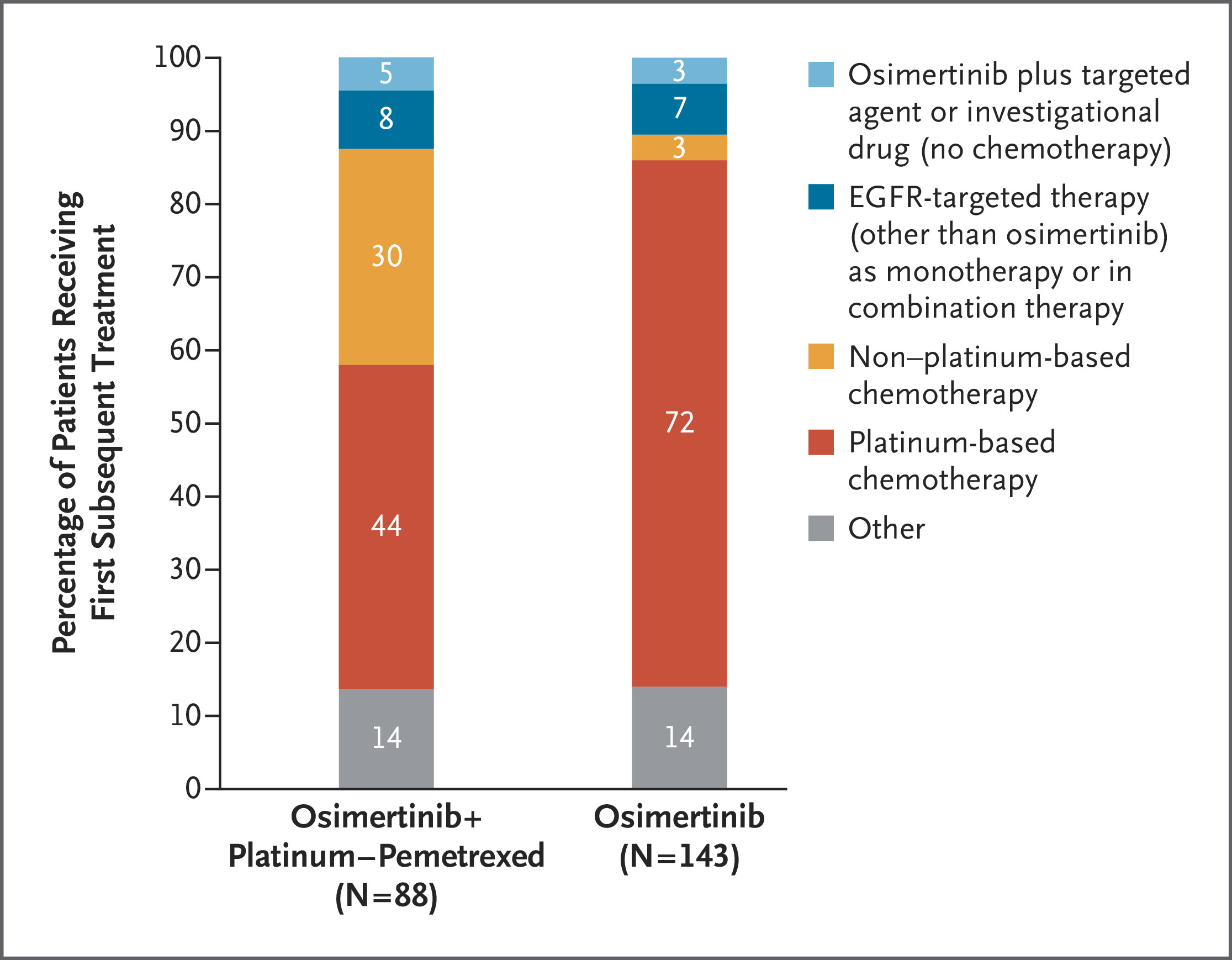The FLAURA2 trial enrolled 557 patients with EGFRm advanced NSCLC, who were randomized 1:1 to receive osimertinib plus chemotherapy (n=279) or osimertinib alone (n=278). The chemotherapy regimen consisted of platinum–pemetrexed, administered concurrently with osimertinib.