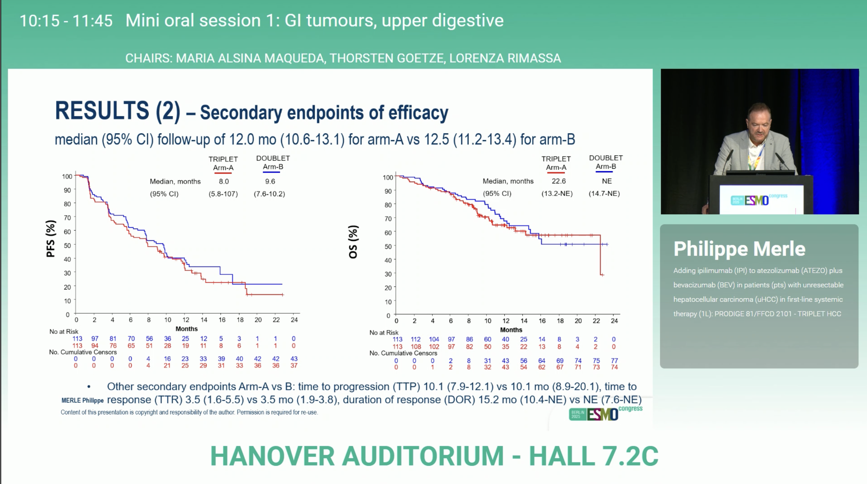 Overall, efficacy outcomes were similar, but tolerability favored the atezolizumab–bevacizumab doublet, reinforcing the robustness of this combination as standard of care.