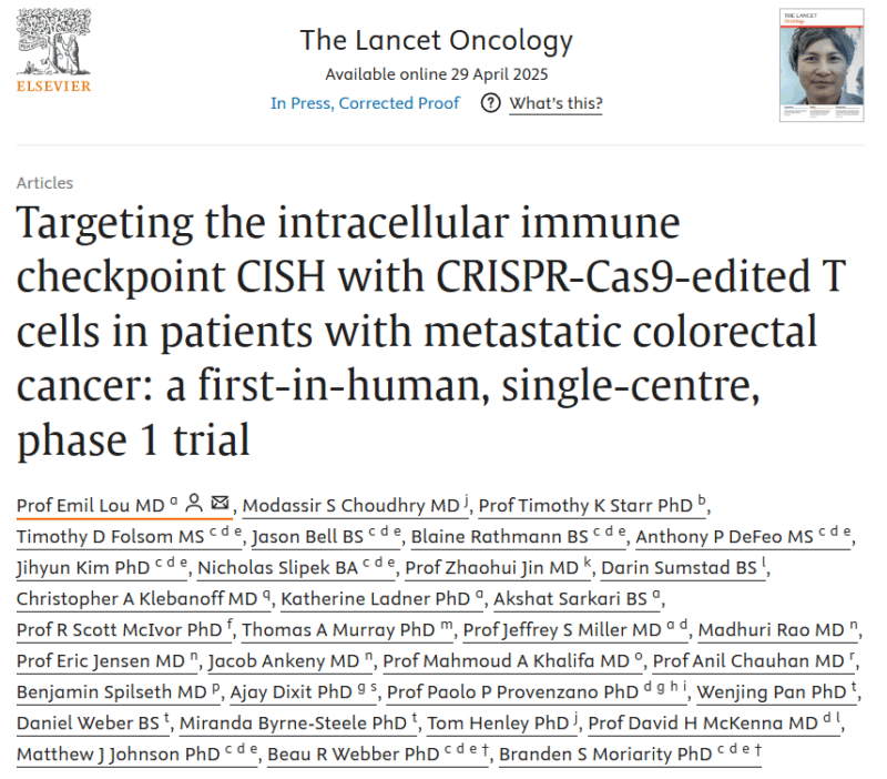 “Researchers evaluated a first-in-human approach using CRISPR-Cas9 to knock out CISH, an intracellular immune checkpoint, in tumor-infiltrating lymphocytes (TILs) for patients with metastatic GI cancers.