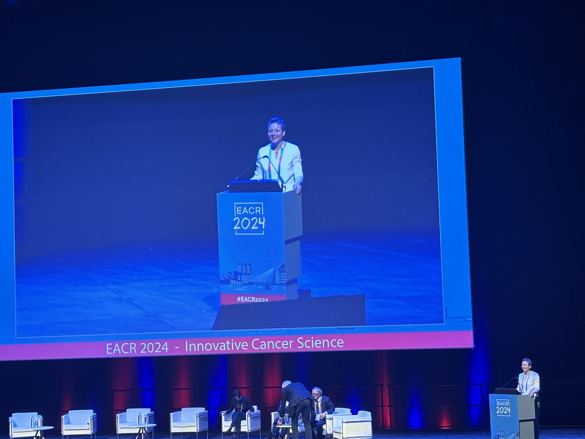 This is my mentor on the main stage of EACR 2024! Huge congrats to Elisa Oricchio on receiving the Pezcoller EACR Translational Cancer Researcher Award.