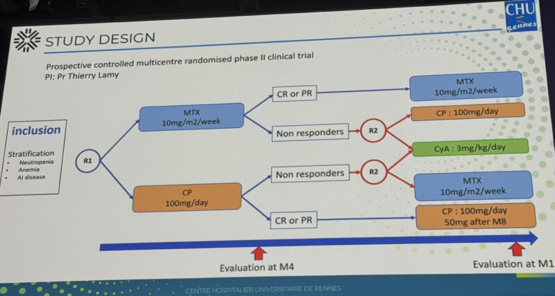 “This was an amazing effort and practice-changing study for LGL leukemia – cyclophosphamide is superior to MTX with respect to ORR with comparable safety – took 10 years to accrue but shows that we can do RCT in rare hem diseases.”