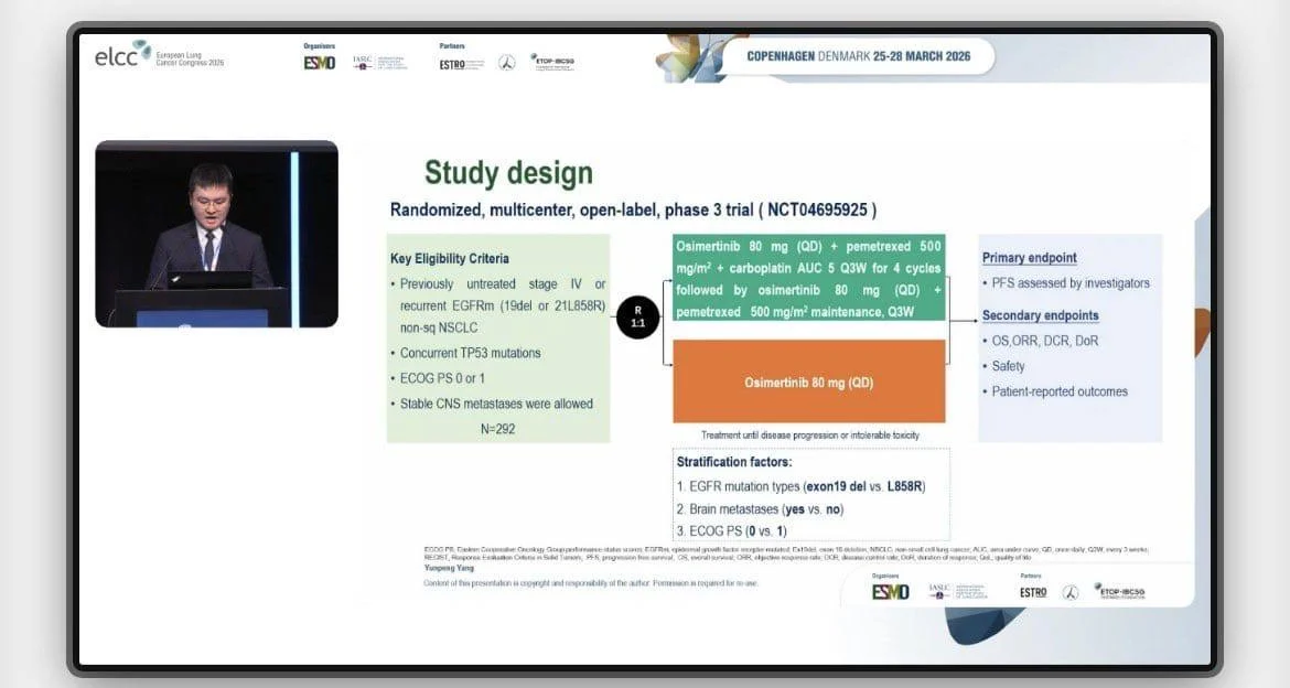 At the European Lung Cancer Congress 2026, results from the phase III TOP study provide compelling data addressing this question, evaluating osimertinib with or without chemotherapy as first-line treatment in patients with EGFR/TP53 mutant NSCLC.