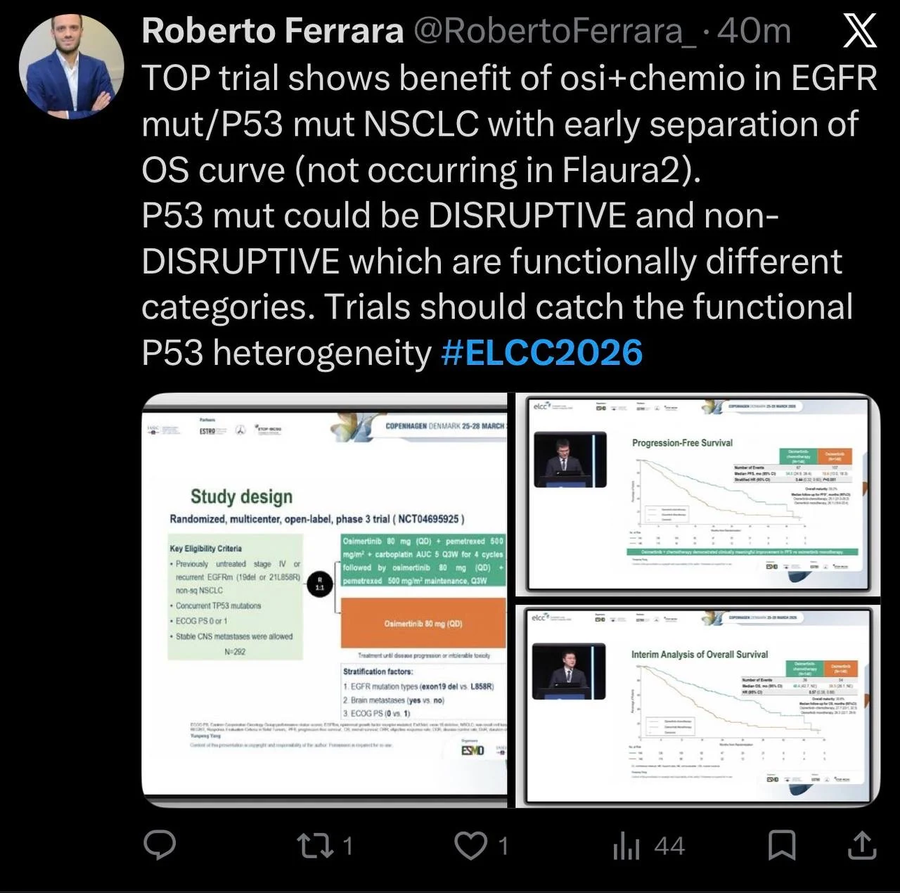 Roberto Ferrara- Medical Oncologist, Researcher in Thoracic Oncology and Molecular Immunology writes in X