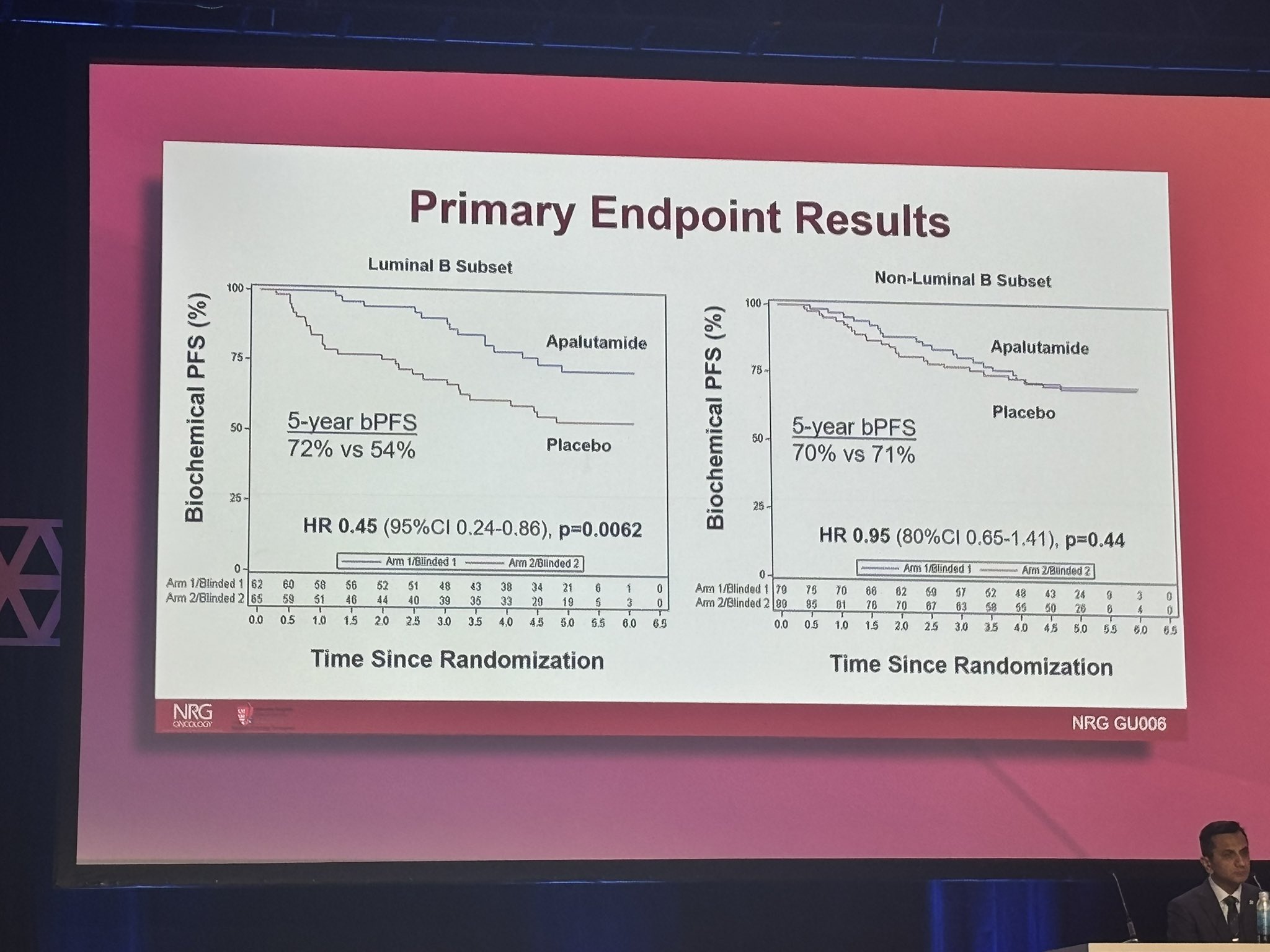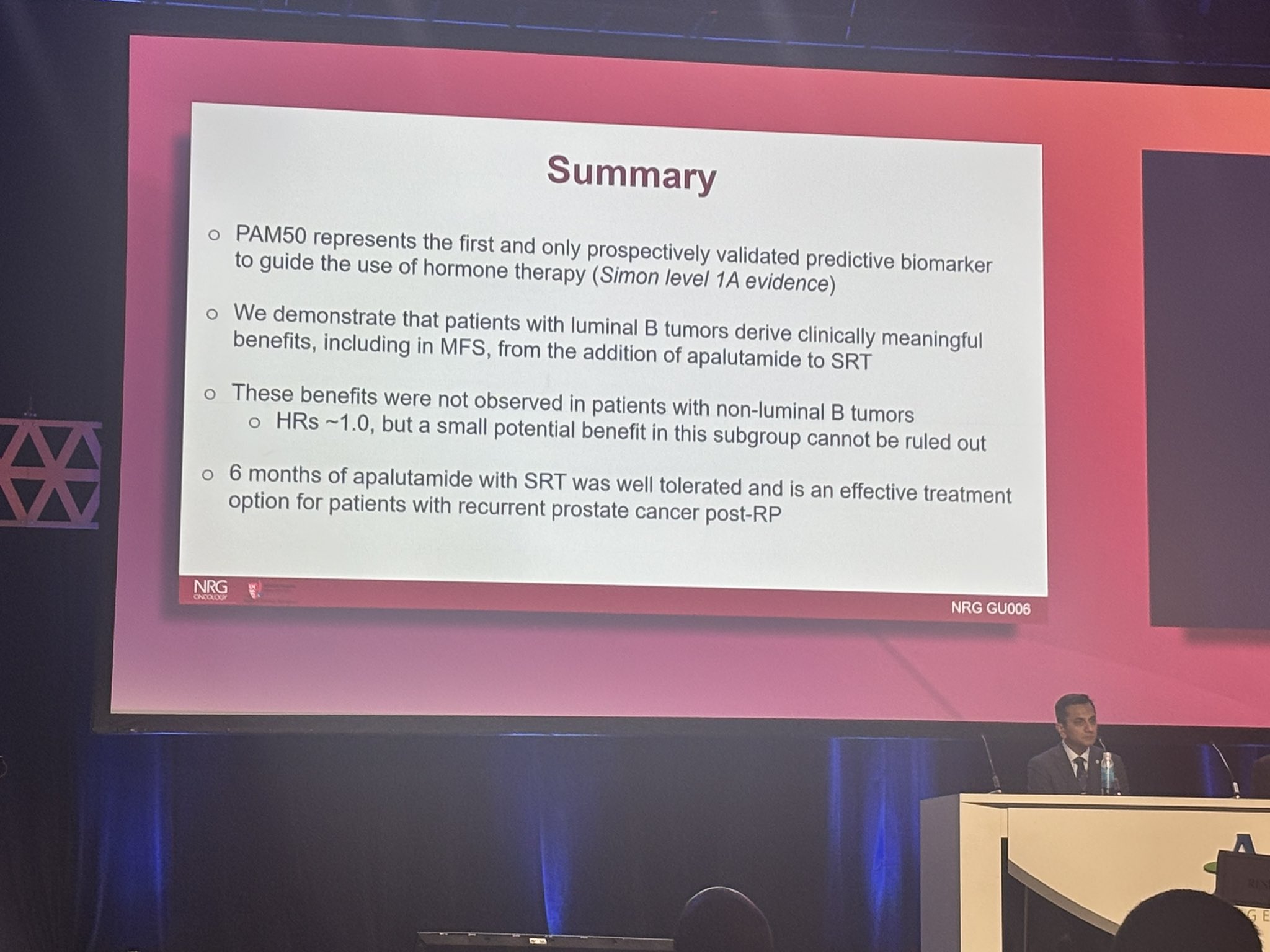 “First up NRG GU006 BALANCE trial showing significant improvement in PFS in recurrent prostate cancer with radiation and apalutamide! Also the first biomarker stratified prospectively validated use of HRT․”