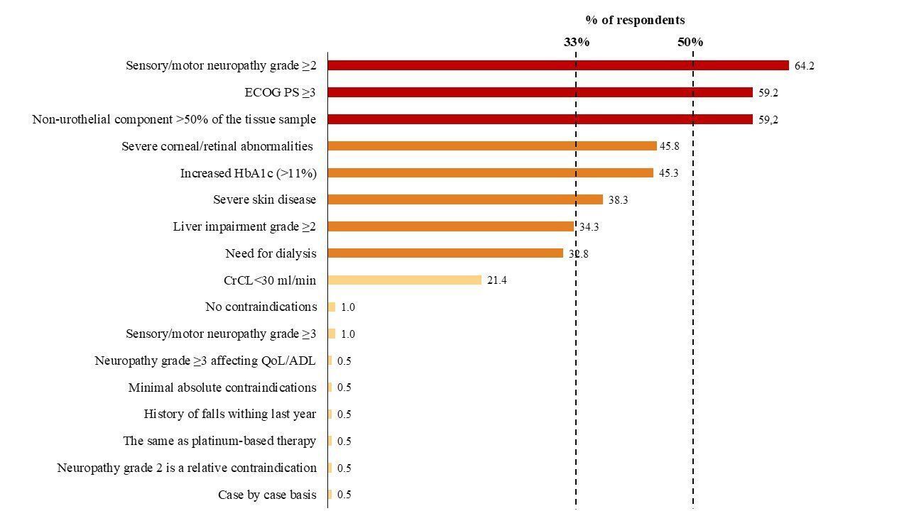 But it also brings real-life challenges: pre-existing neuropathy, non-urothelial histology, poor performance status, or uncontrolled diabetes can increase toxicity risk – and these patients were not represented in pivotal trials.