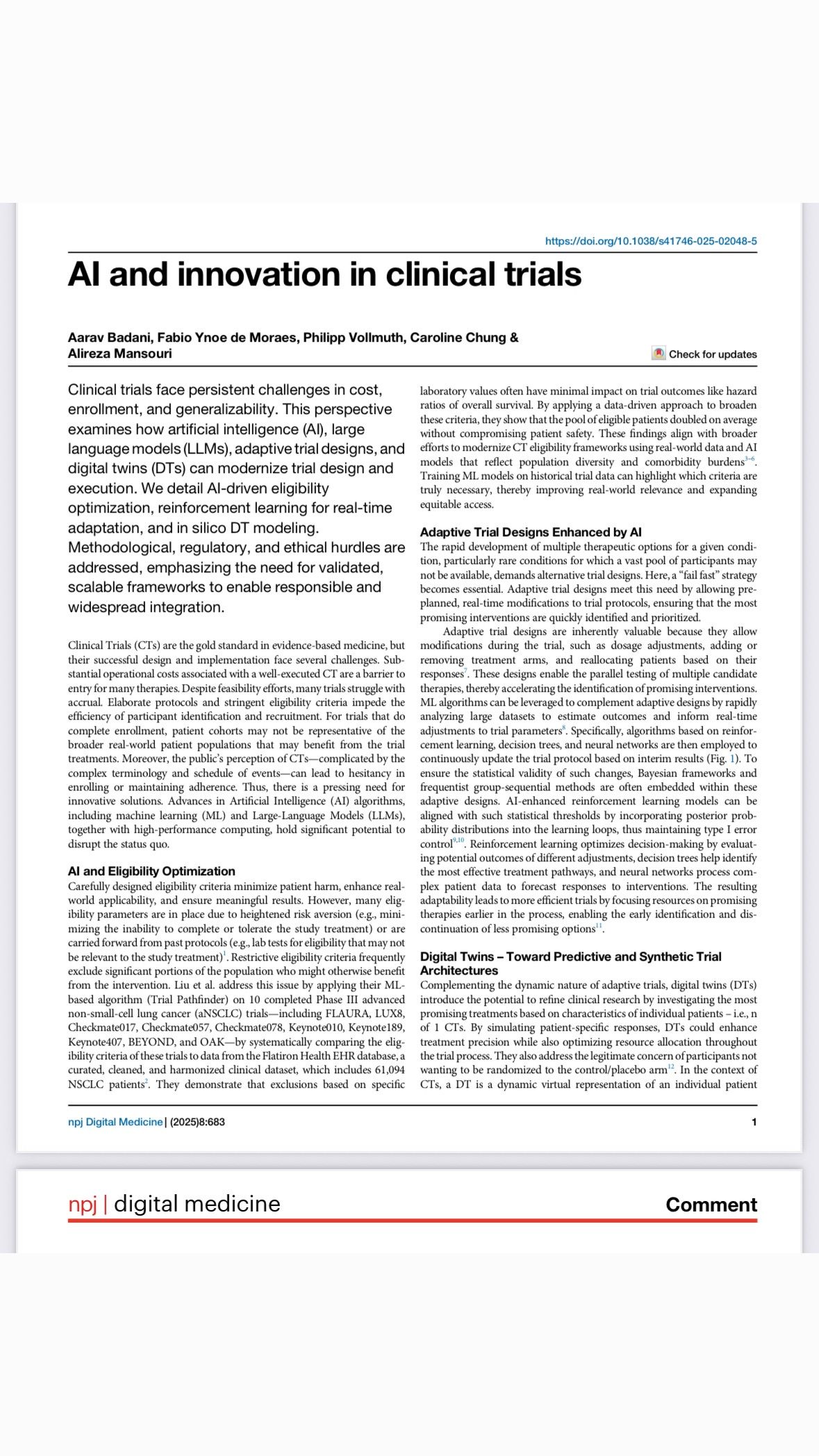 For decades, clinical trials have been slow, expensive, exclusionary, and unable to keep pace with scientific innovation. Our new article published today in npj Digital Medicine argues a simple but urgent thesis: