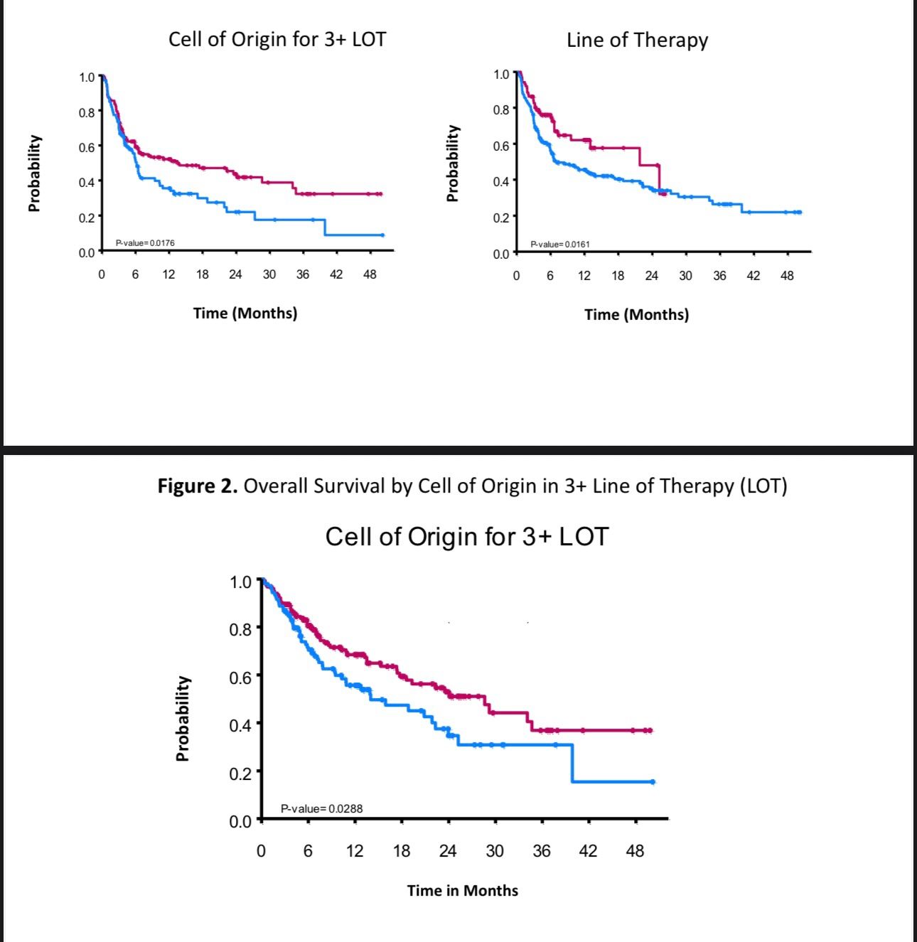 - GCB subtype derive a significant survival benefit when CAR-T is given in 3L+ setting. No difference between the 2 COO subtypes in the second line setting.