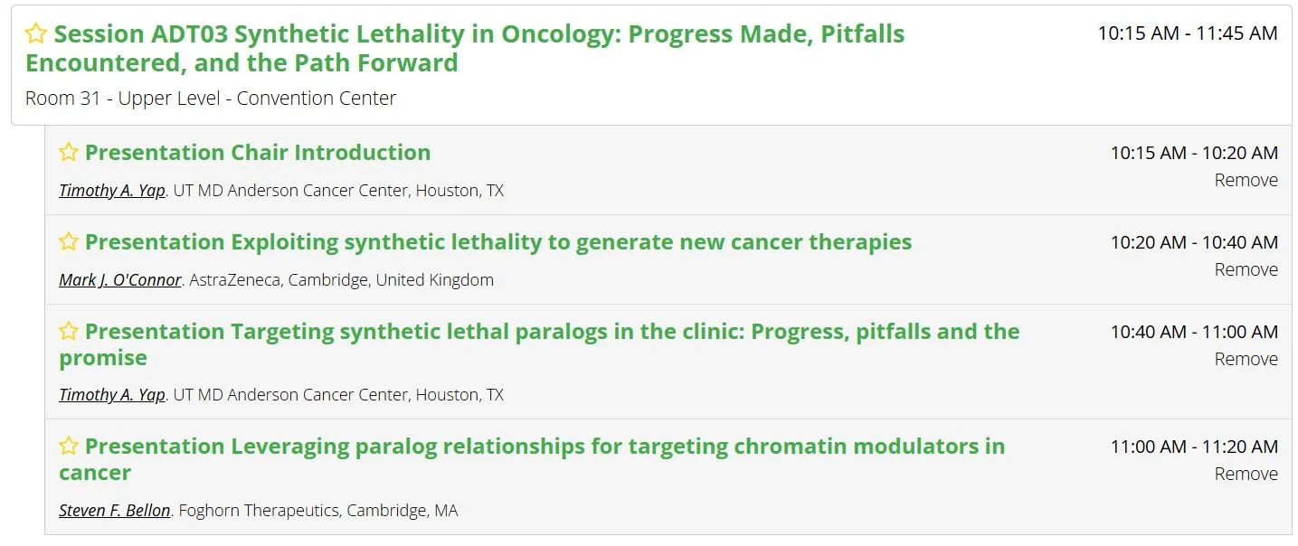 My top choice is Timothy Yap‘s session about synthetic lethality. With all the innovation around new modalities, we are starting to see how leveraging synthetic lethality translates into clinical impact. But I will for sure also learn about resistance mechanisms to ADCs and count kilometers in the poster sessions on tuesday.