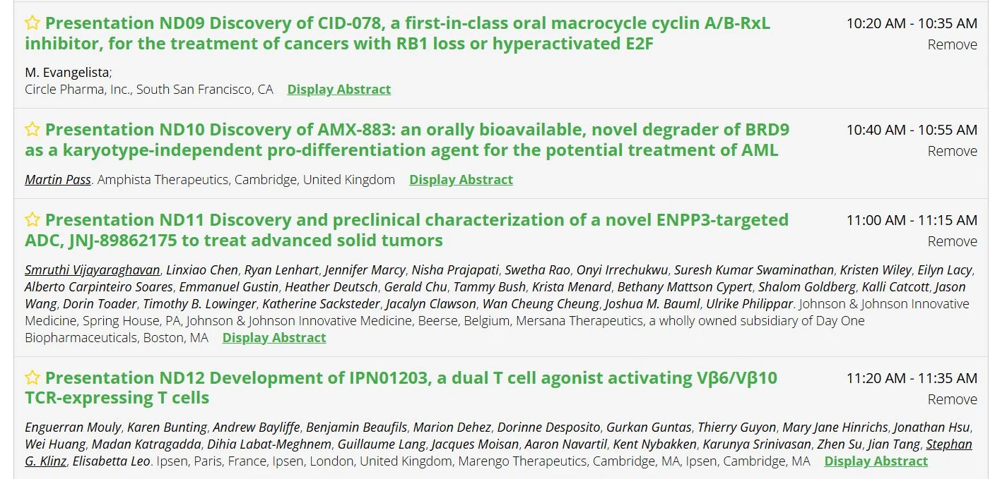 Almost impossible to choose one session. But now I need to go with the 3rd part of New Drugs on the Horizon. Obviously, I am not going to miss any of the three sessions. The mix of modalities covered by these 12 first disclosures (glue degraders, T cell engagers, bispecific antibodies, highly selective inhibitors, dual payload ADCs, mycrocyclic peptides, bifunctional degraders) is a true representation of how modality innovation is starting to drive clinical progress.