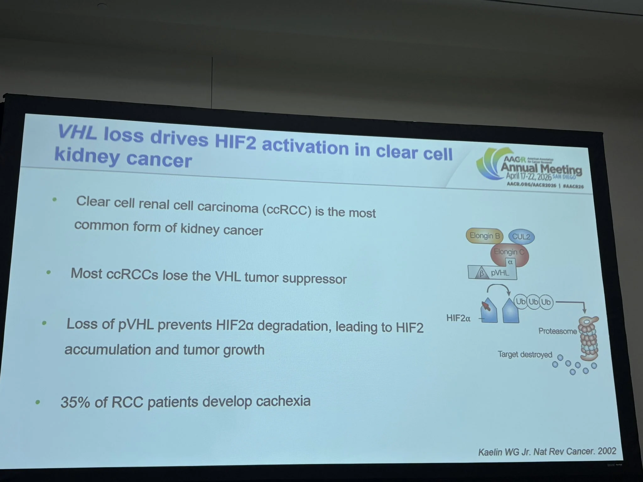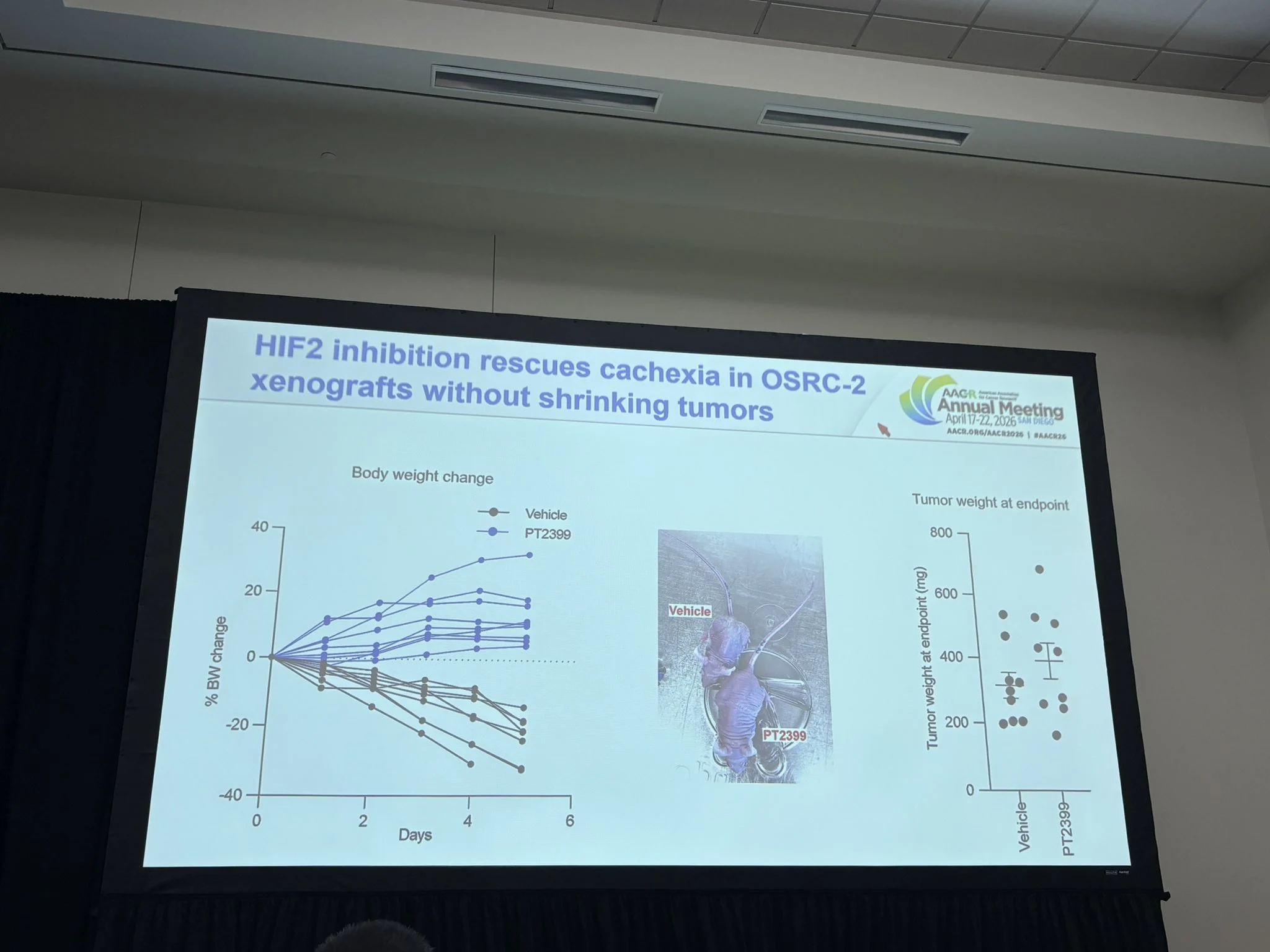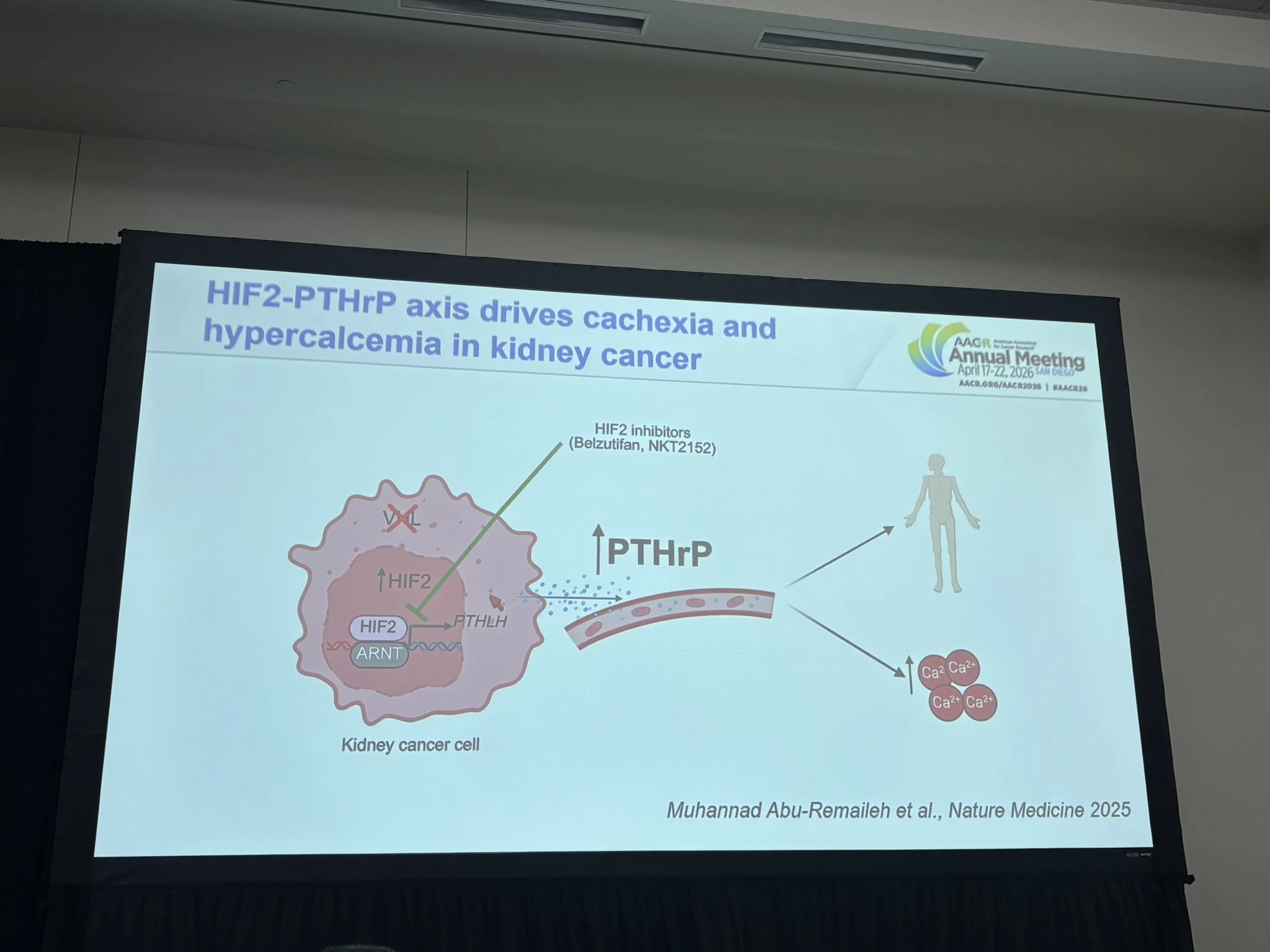 VHL loss → ↑HIF2 → ↑PTHrP in ccRCC PTHrP drives cachexia + hypercalcemia — tumor-size independent Belzutifan ↓PTHrP & rescues body composition even WITHOUT tumor shrinkage.”