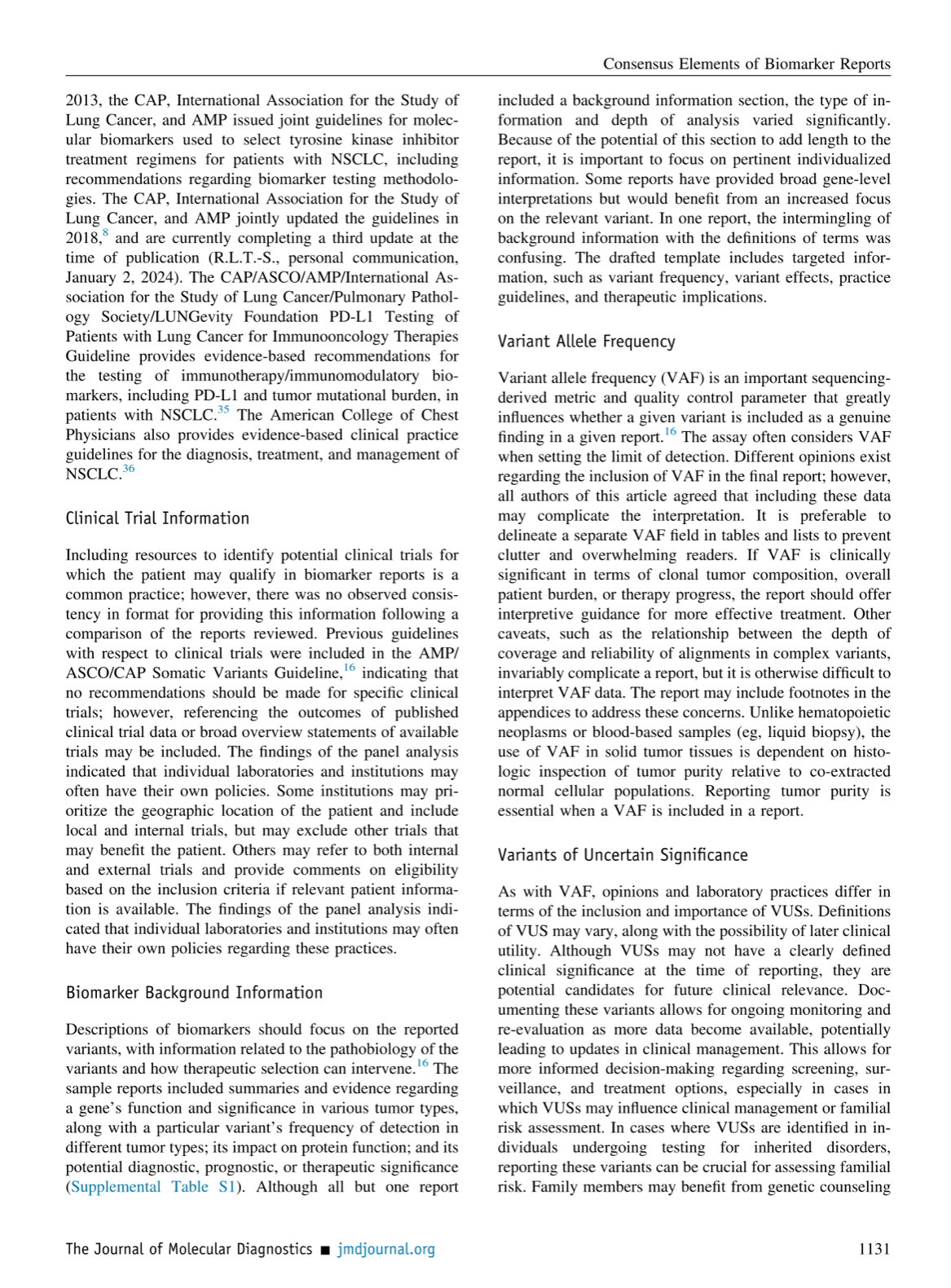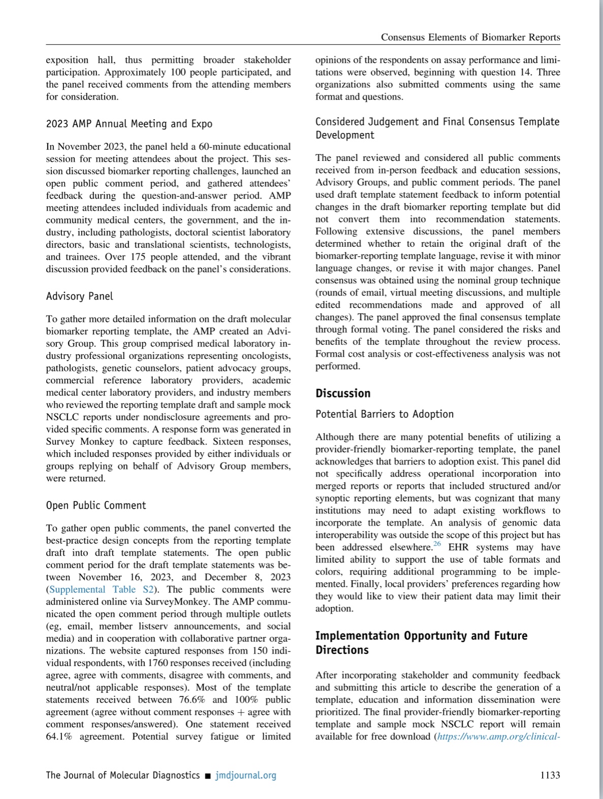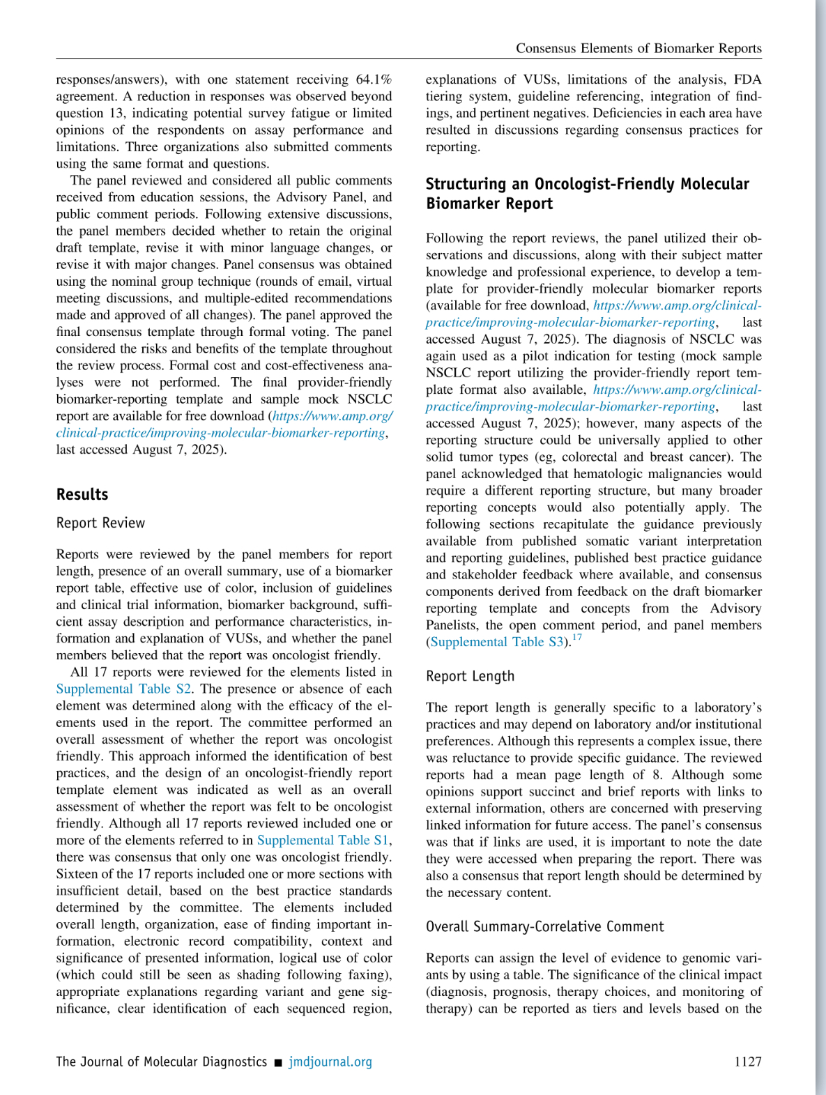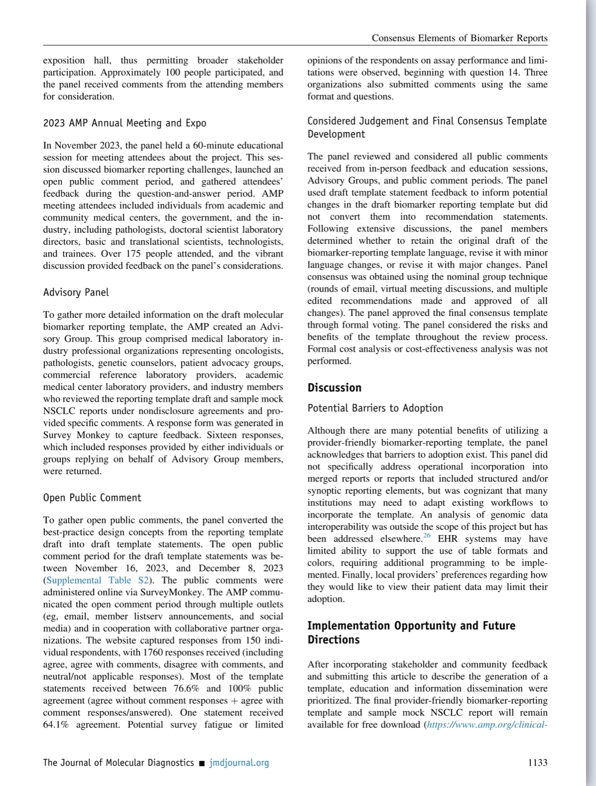 Title: Developing Consensus for a More Provider-Friendly Next-Generation Sequencing Molecular Biomarker Report