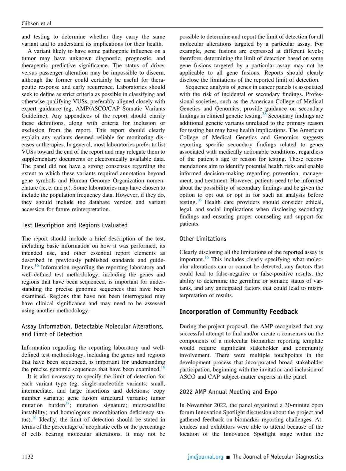- To address this gap, the Association for Molecular Pathology (AMP) convened a multidisciplinary working group of oncologists, molecular pathologists, and diagnostics experts to create something the field has needed for years: