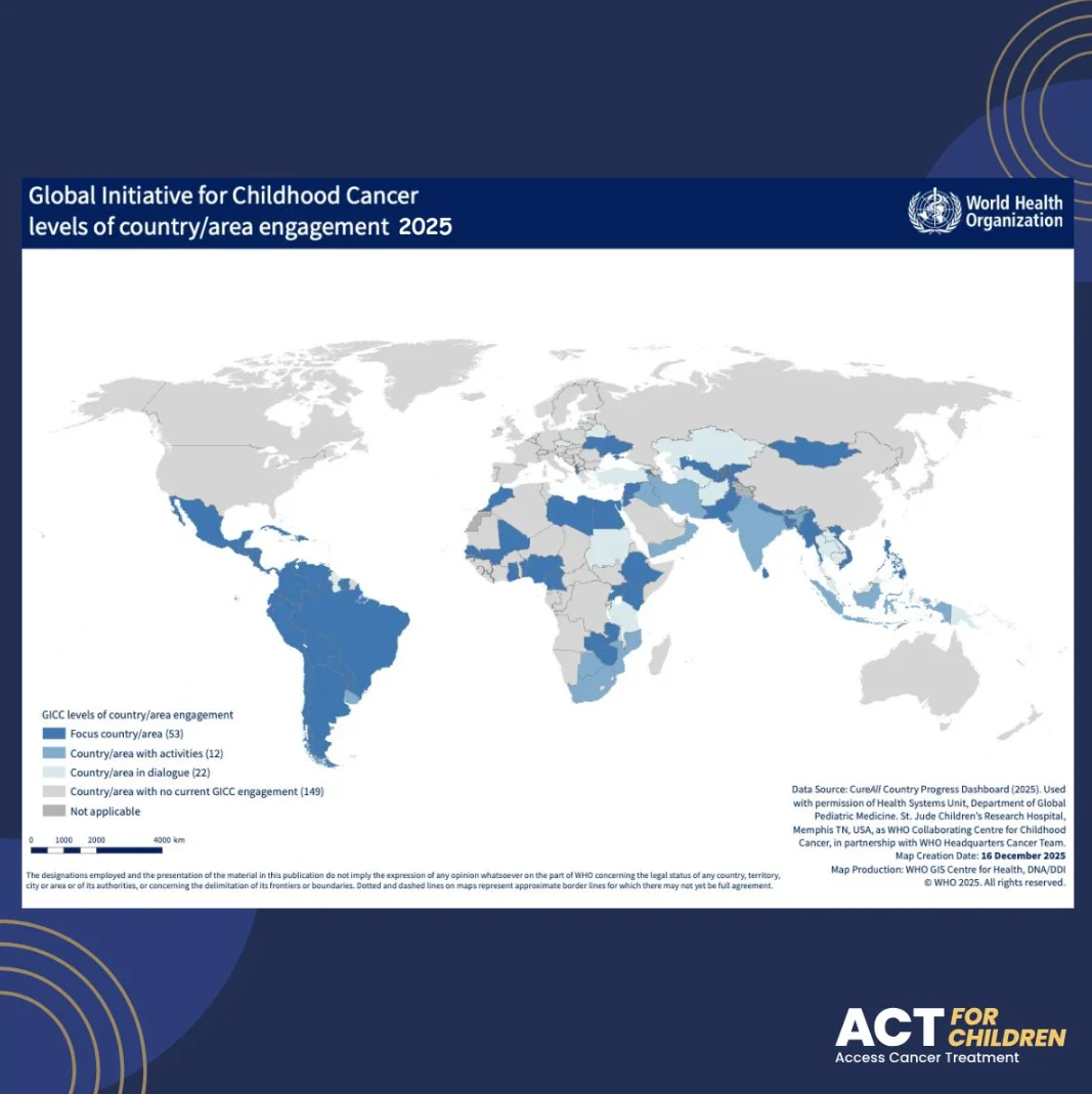 Today, that momentum has evolved into a global movement: 87 countries are engaged, 50 have already integrated childhood cancer into their national health strategies, and many more are strengthening access to life-saving medicines and care.