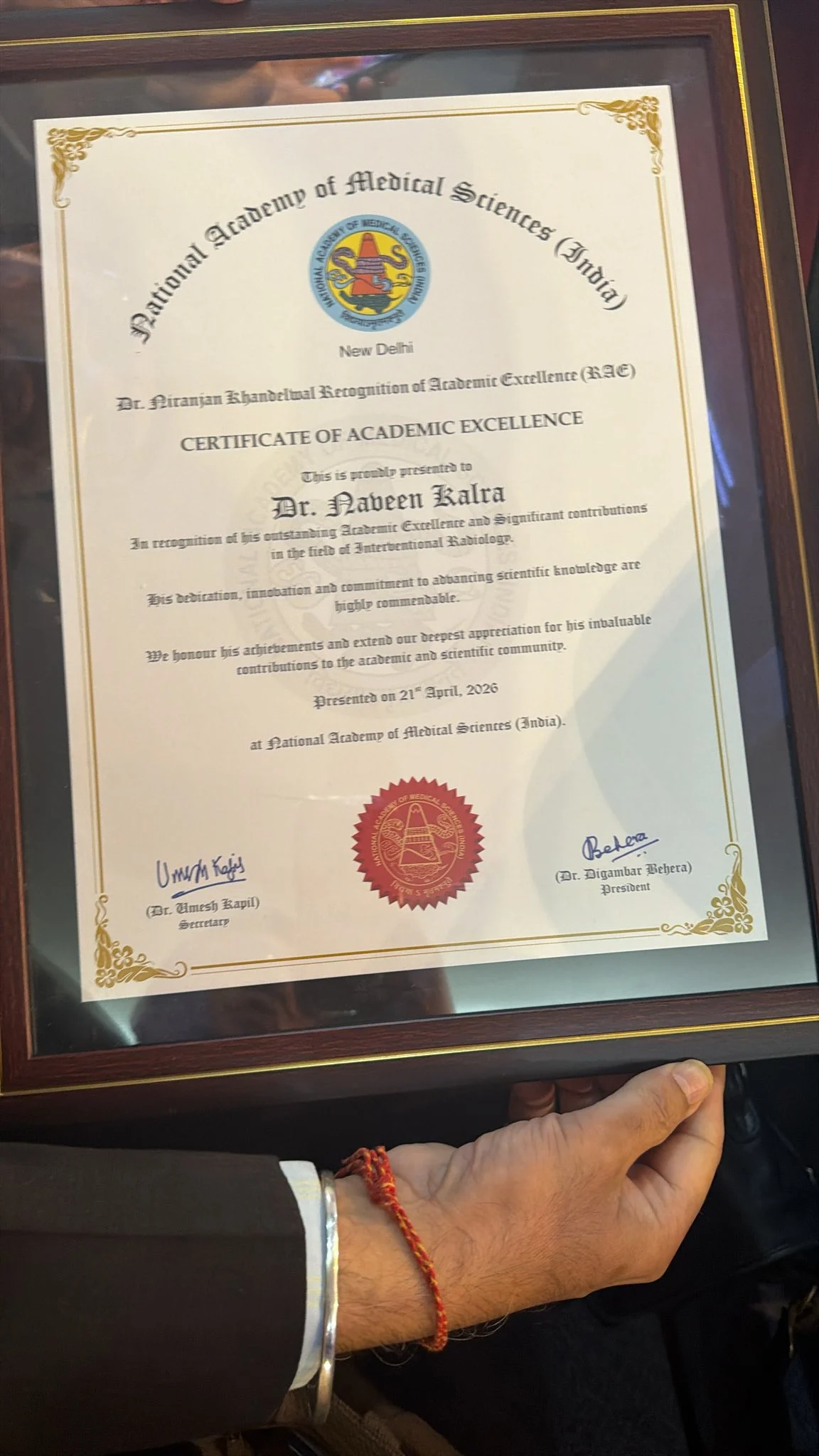 “Pleased to share that I have been honored with the prestigious Gen Amir Chand Award for Academic Excellence in Non-Communicable Diseases by the National Academy of Medical Sciences (NAMS), for my work in systemic vasculitis!