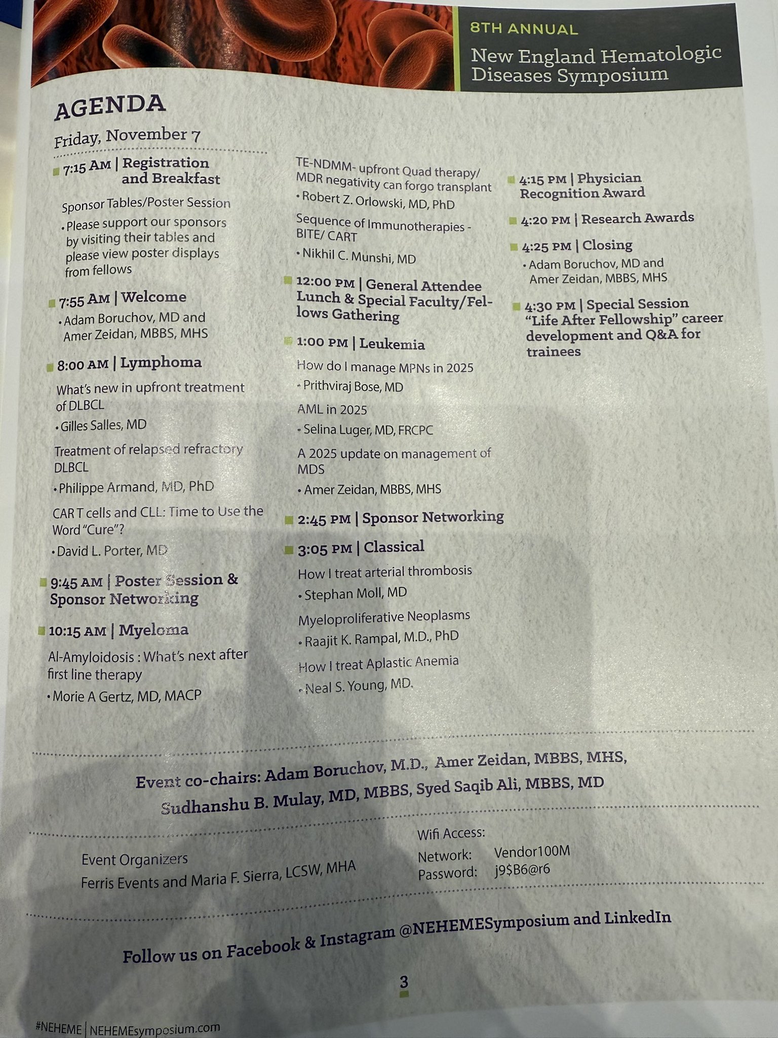 “A great pleasure to co-chair and kick off the 8th annual NEHEME New England Hematologic Diseases Symposium in Bristol, CT with an outstanding lineup of speakers in Myeloid cancers and diseases, Plasma cell neoplasms, lymphoid cancers, and hematologic diseases.