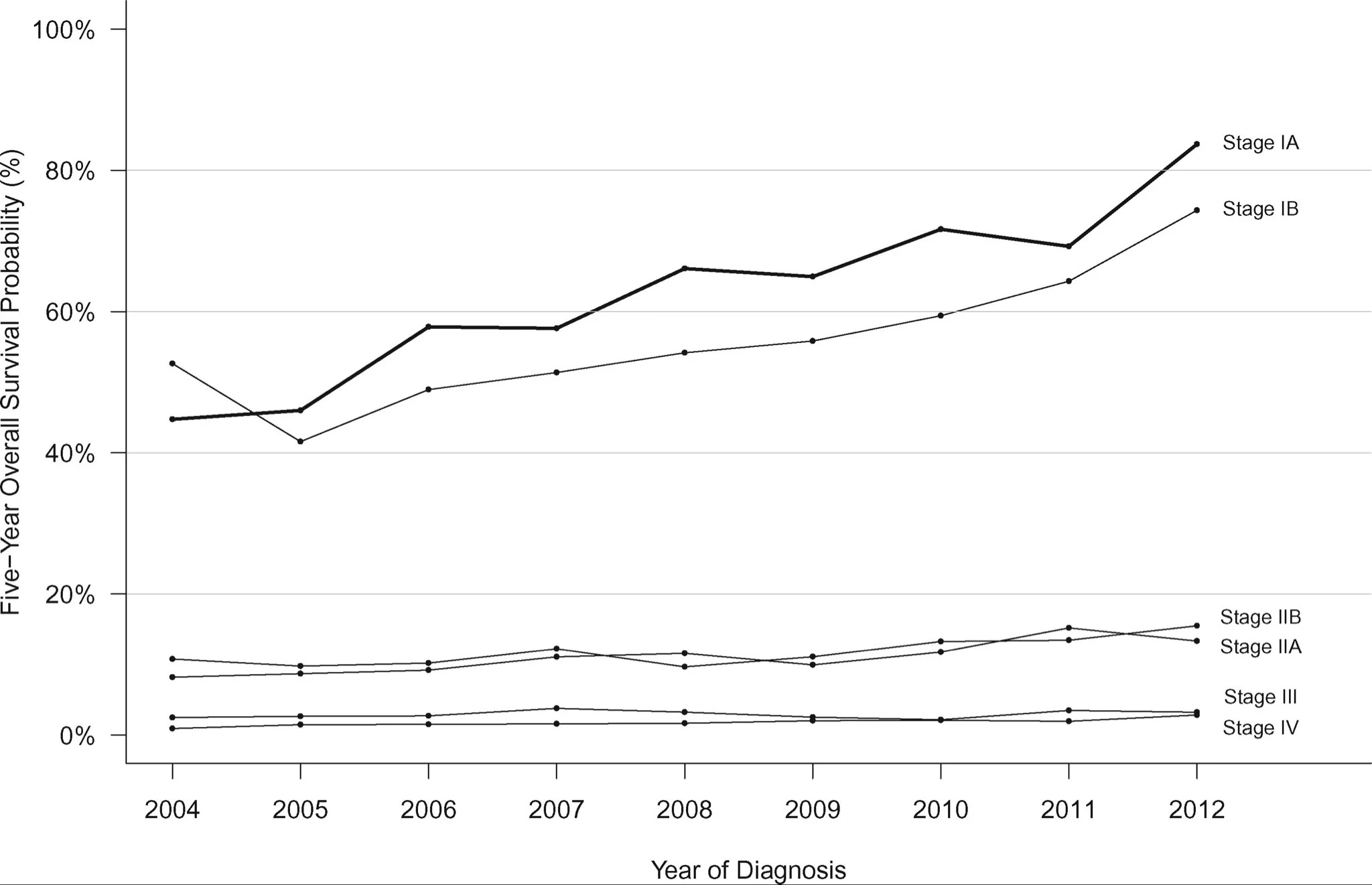 “Retrospective data on early stage (Stage 1A/1B) Pancreatic Cancer in the USA and 5-year survival rates.”