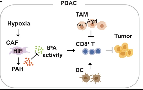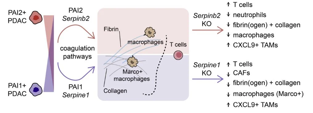 “Two recent studies highlighting the role of stroma-derived plasminogen activator inhibitor proteins (PAI1 and PAI2) creating an immunosuppressive tumor microenvironment in Pancreatic Cancer, via modulation of macrophage composition.”