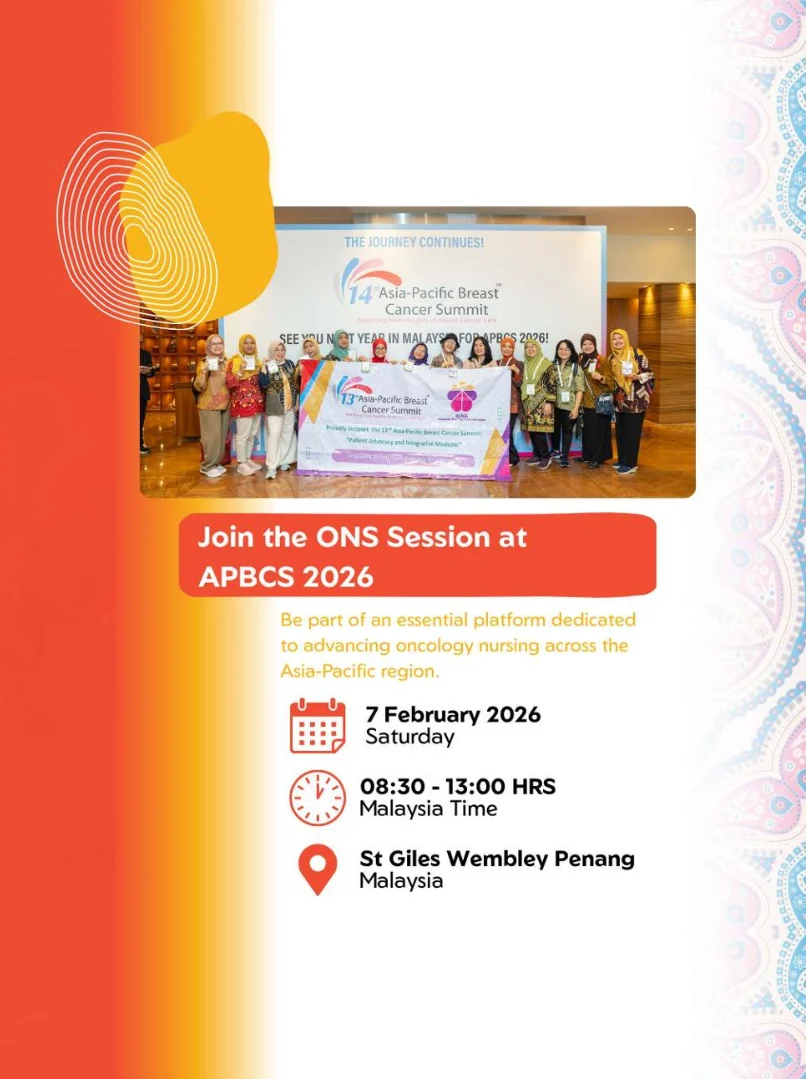 “The Oncology Nursing Society (ONS) Session returns to APBCS 2026 with a renewed commitment to strengthening oncology nursing across the Asia-Pacific region. This year’s session brings focused, evidence-based learning designed to support nurses on the frontline of cancer care.