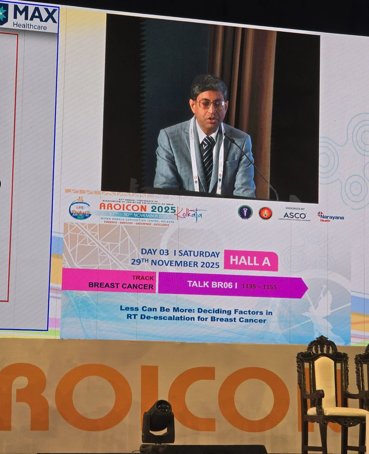 “Last weekend I was invited by the AROICON 2025 to deliver a talk on “Radiation De-escalation strategies in breast cancer”. I felt fascinated to discuss various concepts on de-escalation of treatment in breast cancer while focussing on how can we de-escalate radiation in breast cancer patients. While it seems interesting and patient friendly, one must understand the complexity in such decision making to avoid compromizing patient outcome.