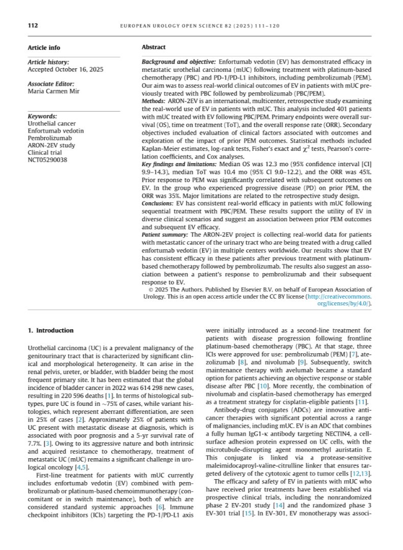 “Hot off the ARON2EV metastatic Urothelial Cancer Press!! High Impact European Urology European Association of Urology Group of Journals!
