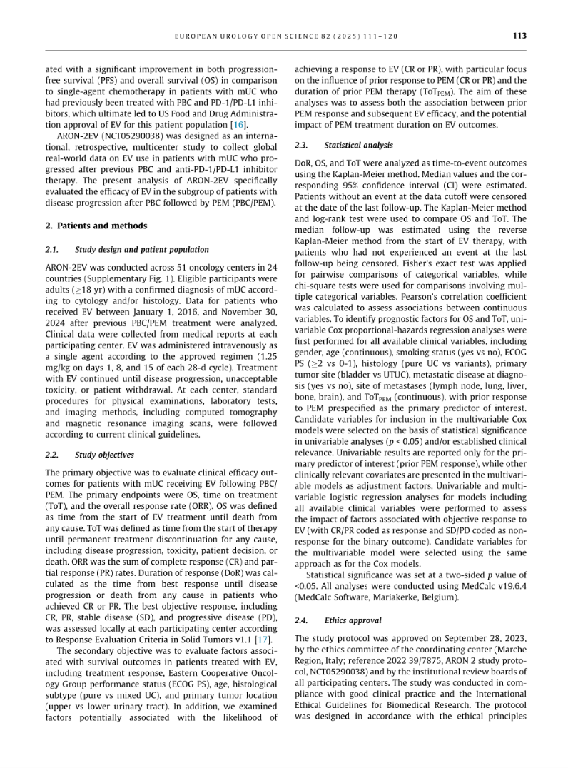 Title: Efficacy of Enfortumab Vedotin After Platinum Chemotherapy and Pembrolizumab in Metastatic Urothelial Carcinoma: A Multicenter Real-World Analysis of the ARON-2EV Cohort