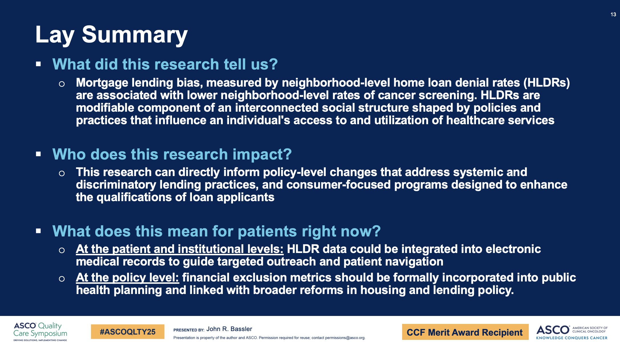 “Our team built a novel mortgage denial measure to study neighborhood-level financial exclusion. The finding: areas with higher home loan denial rates had lower cancer screening rates.