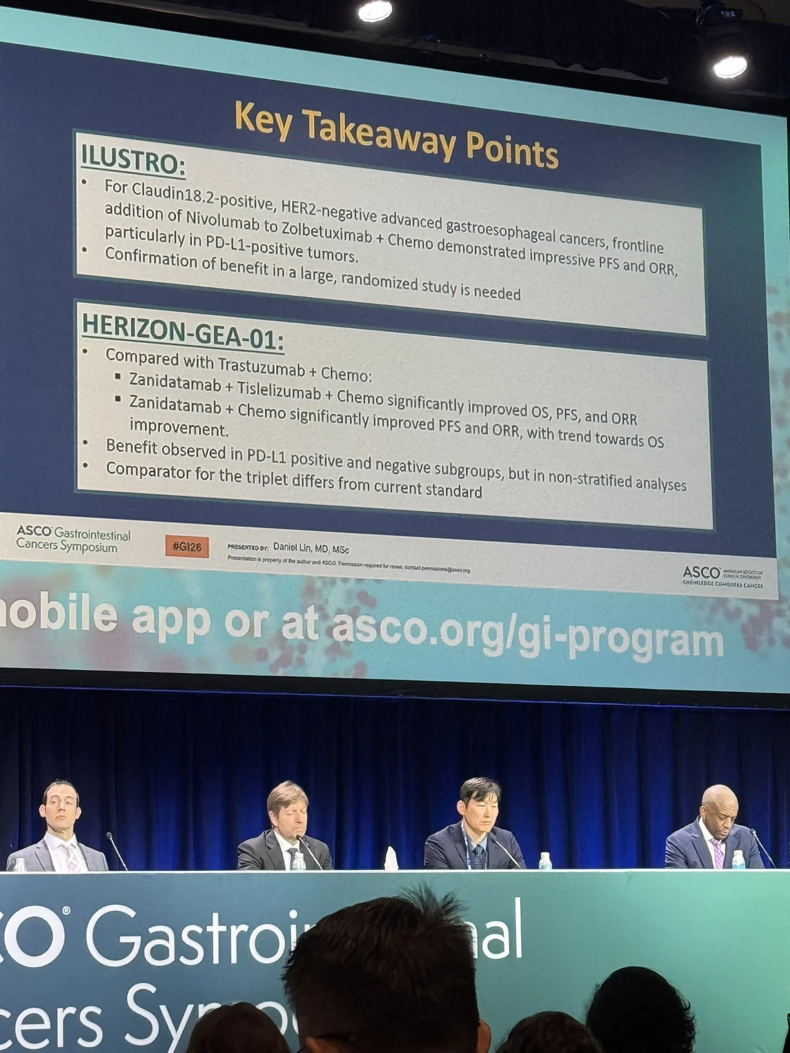 “Terrific sessions this morning at GI26 with results in resectable and advanced gastric cancer from NEOSUMMIT-01, neoadjuvant therapy CRITICS II, ILUSTRO, and HORIZON-GEA-1 results. Targeting Claudin 18.2 (Zolbetuximab) and Her2 (Zanidatamab) highlighted in the advanced setting.”