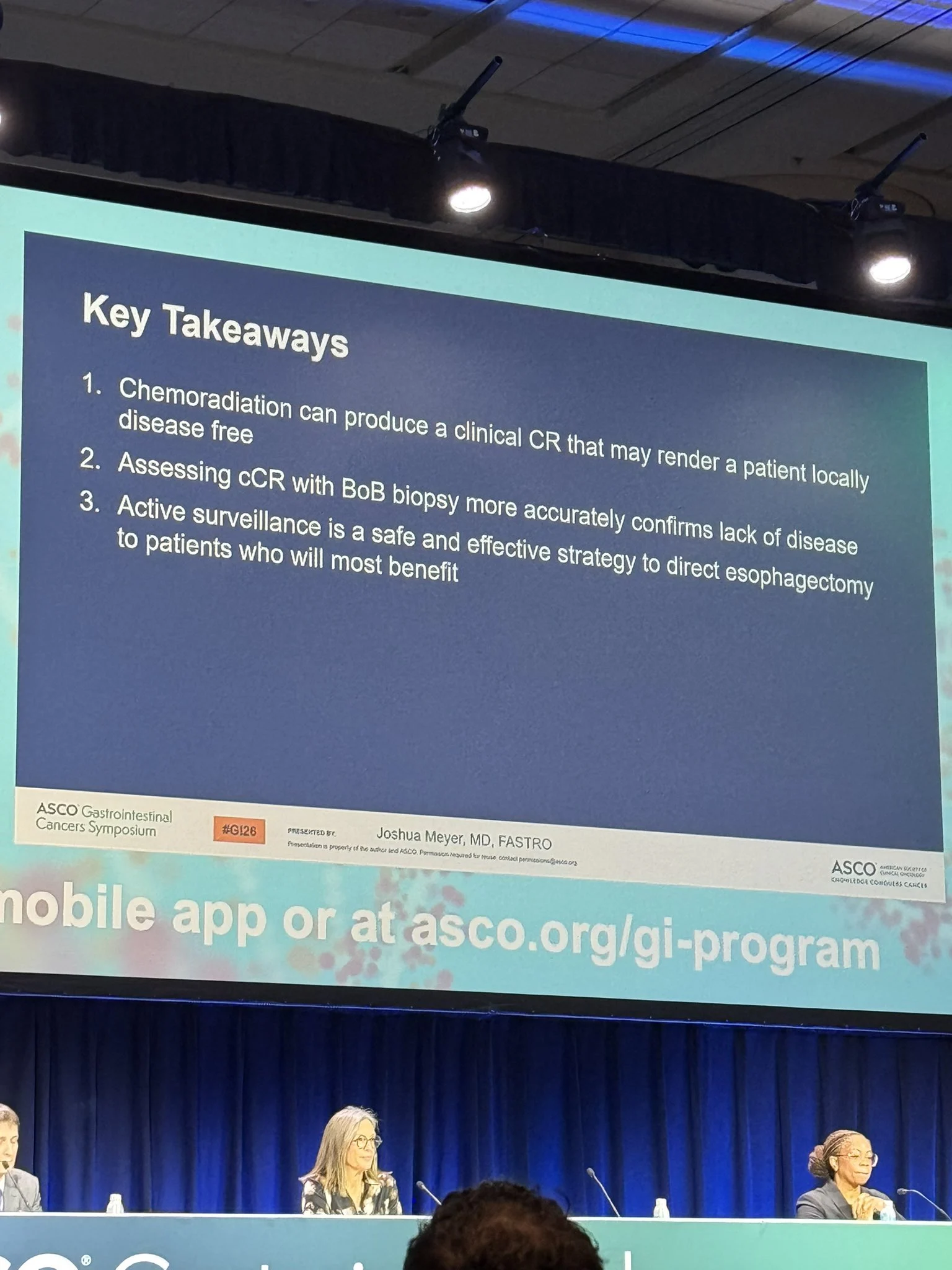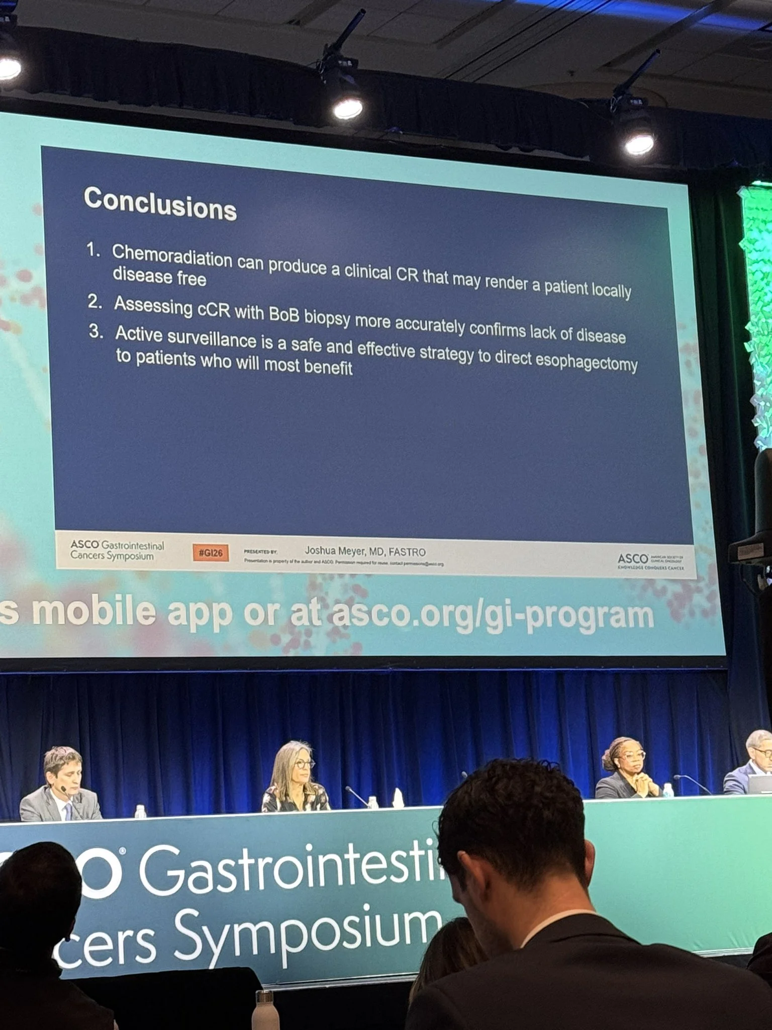 “Great to see Dr. Josh Meyer at the podium at GI26 discussing strategies for avoiding esophagectomy in locally advanced gastroesophageal cancer. NeoRes II supported delayed surgery. SANO also supported active surveillance. Important quality of life issues discussed.