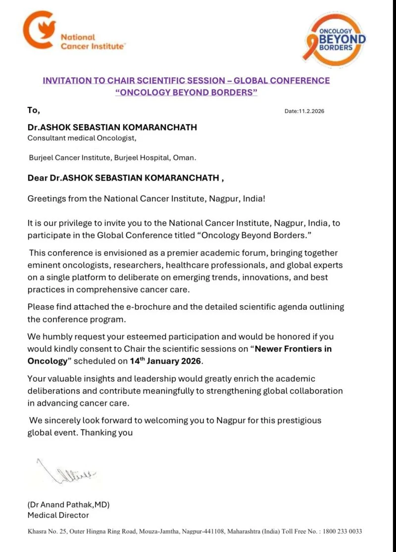 Ashok Sebastian Komaranchath, Consultant Medical Oncology and Clinical Lead for Oncology Services at Burjeel Cancer Institute, Oman, shared a post on LinkedIn: