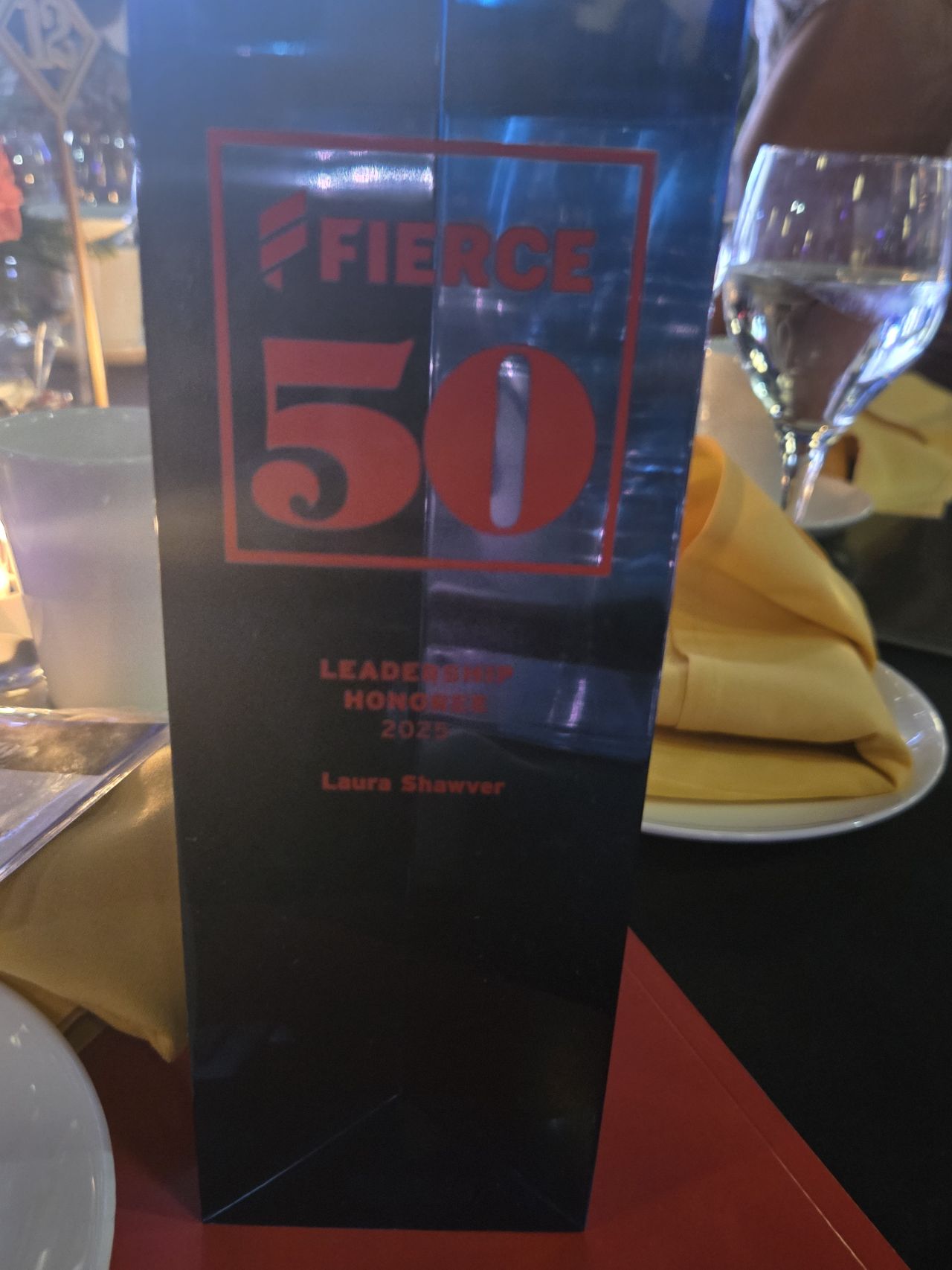 “Honored to accept a Leadership award on behalf of Laura Shawver, Ph.D., last night at the Fierce 50 Awards Gala in NYC.